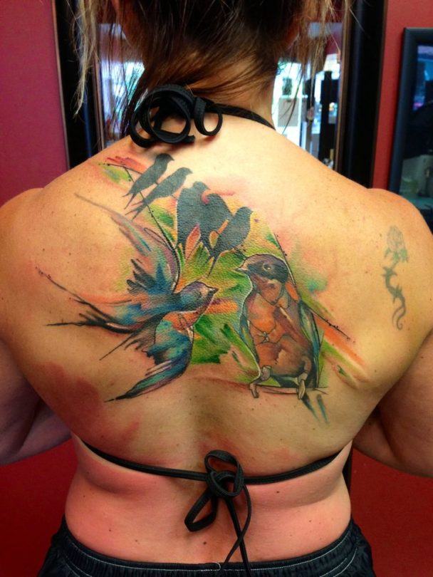 Un tatouage d'oiseau est un choix vraiment bon et conscient pour une femme. Avec ce type de peinture, vous pouvez non seulement décorer votre peau, mais aussi vous protéger de toutes les adversités.
