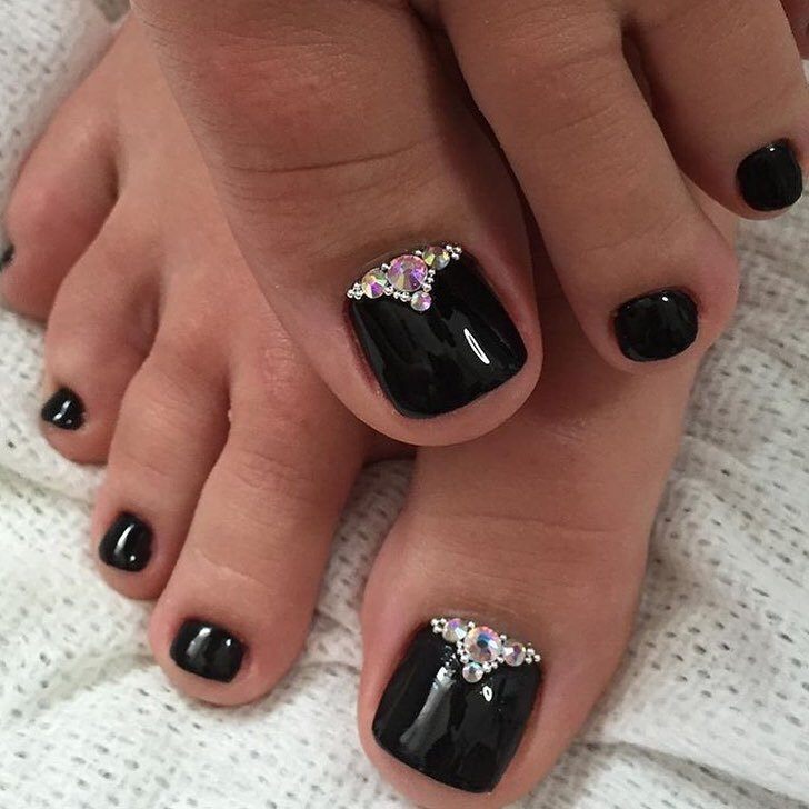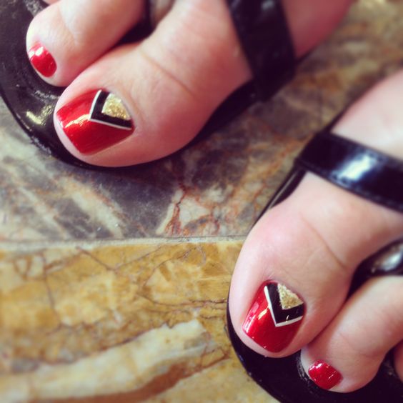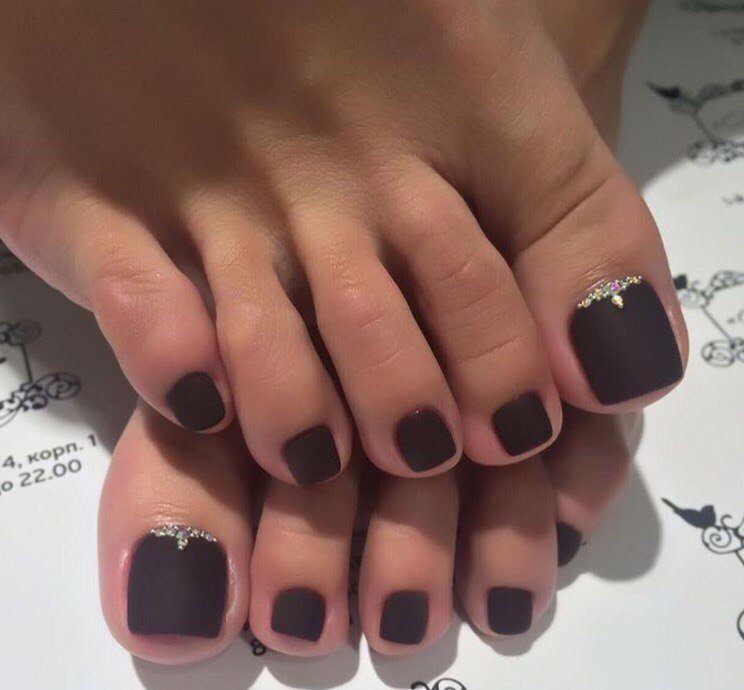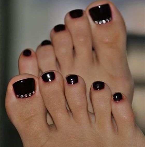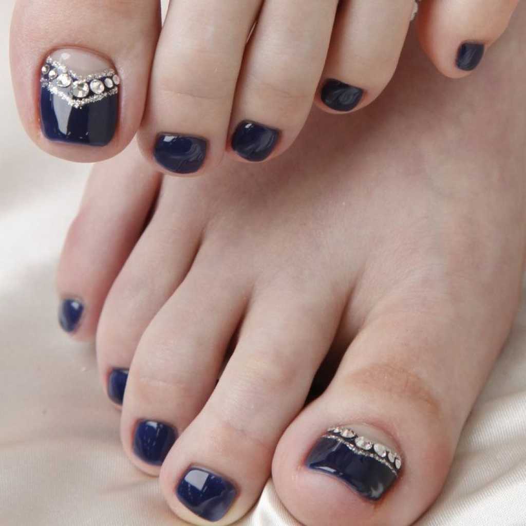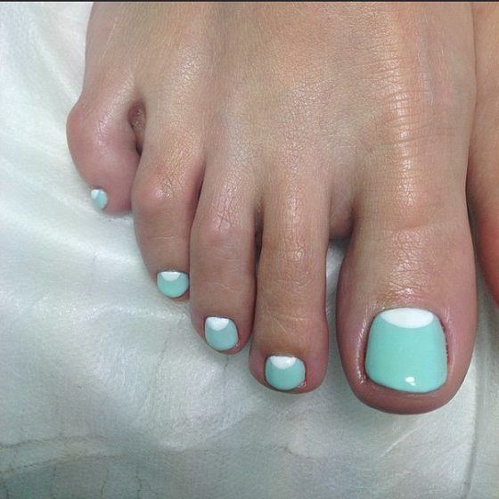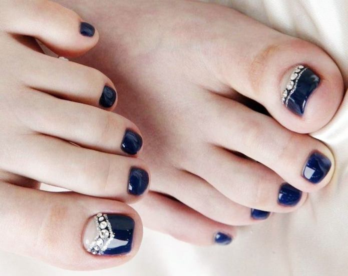 Pédicure est un exercice complètement ennuyeux pour trahir votre zeste en pédicure de lune, utilisez les idées de spécialistes du nail art. Les nuances contrastées sont notre tout. Oubliez une fois pour toutes les couleurs pastel limitées. Vous pouvez maintenant utiliser des nuances dorées, noires, rouges et bleues. Une lunule argentée et des ongles mats de tons sombres sont très beaux. Ne vous habituez pas à la lune sous la forme d'un mois, vous pouvez lui donner n'importe quelle forme, utilisez votre imagination à 100%. La conception lunaire peut être faite sur tous les ongles des jambes et seulement sur un des doigts. Une solution très réussie serait une idée avec une combinaison de pédicure lunaire et française. Pour obtenir un résultat satisfaisant, vous devez concevoir la pointe de l'ongle et sa base dans une couleur différente.