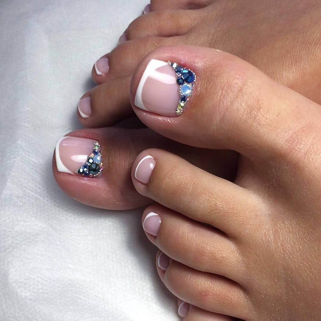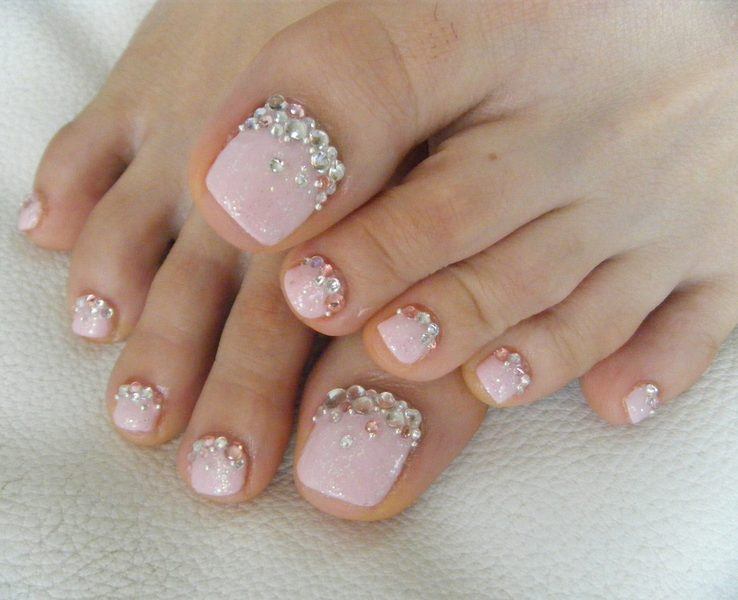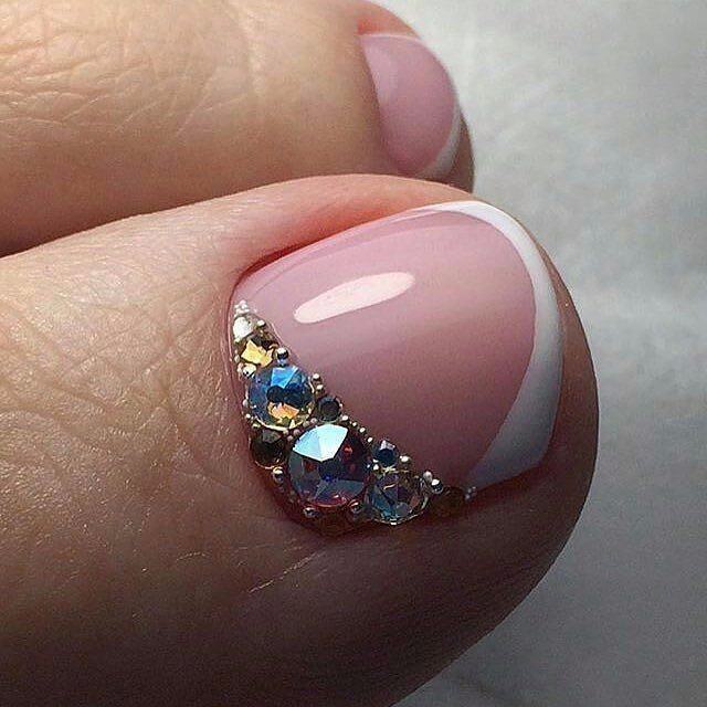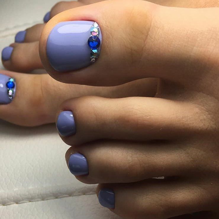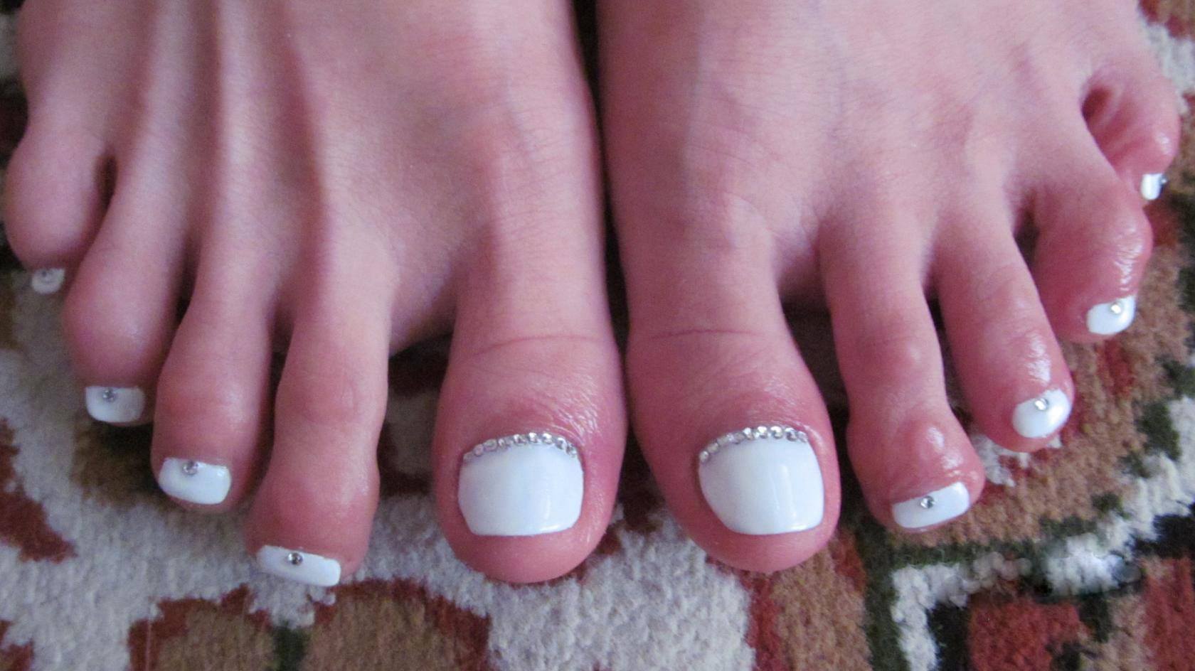 Si vous constatez que les pochoirs sont terminés mais que vous souhaitez réellement effectuer une pédicure lunaire, nous vous expliquerons comment gérer cette situation. Vous aurez besoin d'un peu de patience et de connaissances en technologie. Pour commencer, prenez un vernis décoratif et appliquez-le le long du contour de la base de l'ongle (lunula). La ligne doit être plate et proportionnée. Ce n'est pas obtenu de tout le monde la première fois, mais il n'est pas nécessaire d'être contrarié. Essuyez le contour mal dessiné du vernis décoratif et dessinez-le à nouveau. Vous devez vous efforcer d’obtenir la forme du «croissant», dessinez-le aussi uniformément que possible, un crayon à lèvres vous aidera dans cette affaire. Tracez une ligne en gras avec un crayon, effacez l'excès avec un coton-tige (trempé dans du démaquillant). Les excès de vernis décoratif sur la lunule peuvent être éliminés à l'aide d'un dissolvant pour vernis à ongles. Enduisez le reste de la plaque à ongles avec du vernis, vous pouvez immédiatement utiliser deux couches de vernis. En utilisant un vernis de couleur différente, vous pouvez corriger les irrégularités de la dernière couche de vernis. Si vous souhaitez embellir vos ongles, utilisez des strass, des petits cailloux, des dessins, etc. Il n'y a pas d'ordre pour placer des strass et des cailloux, ils peuvent être situés au hasard sur toute la surface de l'ongle ou seulement sur une partie de la base. A la fin, appliquez une couche de finition.