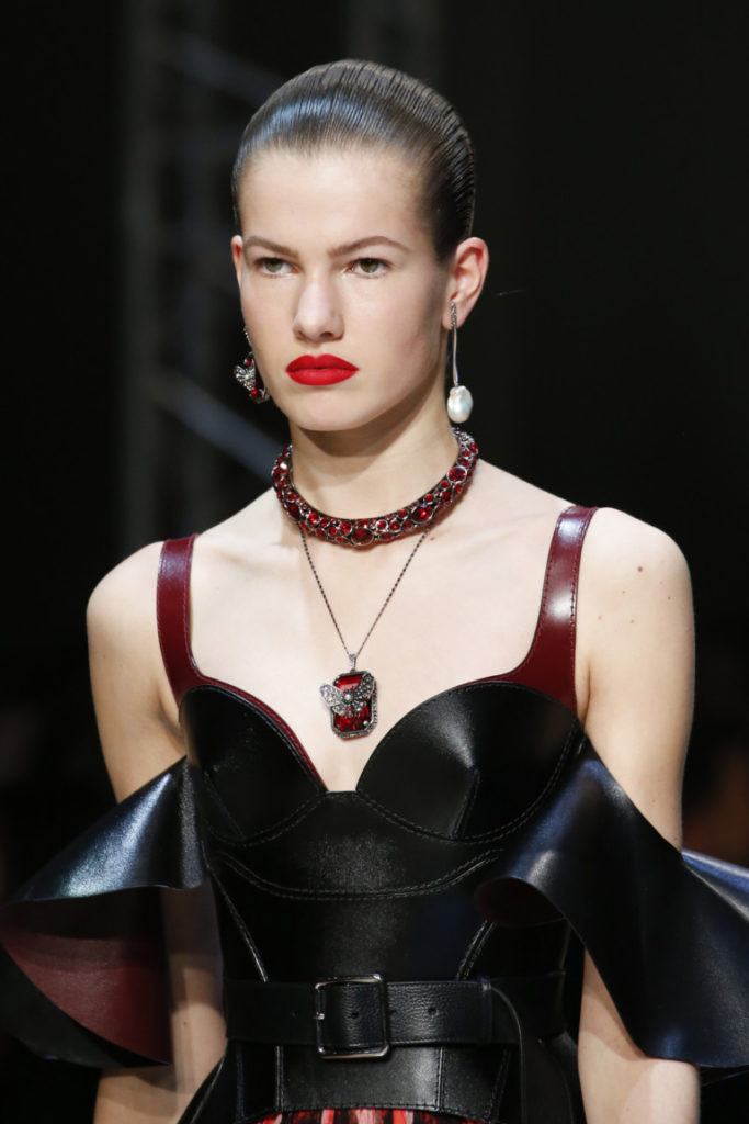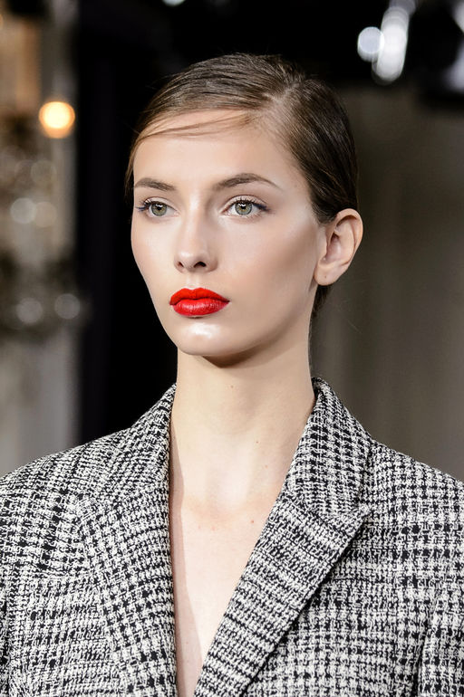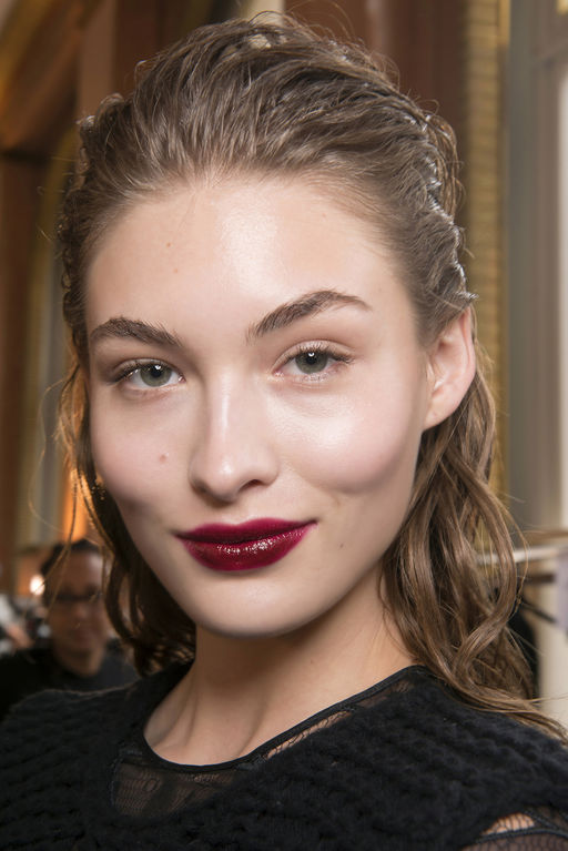 En outre, les lèvres brillantes et juteuses de couleur rouge ou bourgogne sont une autre tendance de la saison automne-hiver. L'essentiel est de choisir l'ombre la plus appropriée. Sinon, le maquillage des lèvres ne sera pas très beau. Nous vous recommandons également de vous concentrer sur les yeux ou les lèvres. La combinaison semble souvent trop intense. Dans ce cas, les plus pertinentes sont les lèvres brillantes, ainsi que les peaux sourdes aux teintes naturelles.