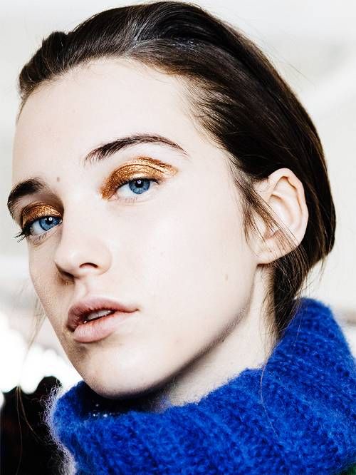 Comme mentionné ci-dessus, les nus s'estompent progressivement dans le fond. Remplacé par des tendances plus brillantes et plus inhabituelles. Par exemple, les paillettes et les strass seront tout simplement au sommet de leur popularité durant la saison automne-hiver. En outre, les maquilleurs prétendent qu'un tel éclat est encore plus important que le mascara dans le maquillage des yeux. Par conséquent, si vous n’avez toujours pas de tels fonds dans un sac à cosmétiques, le moment est venu d’aller à la recherche de votre option idéale.