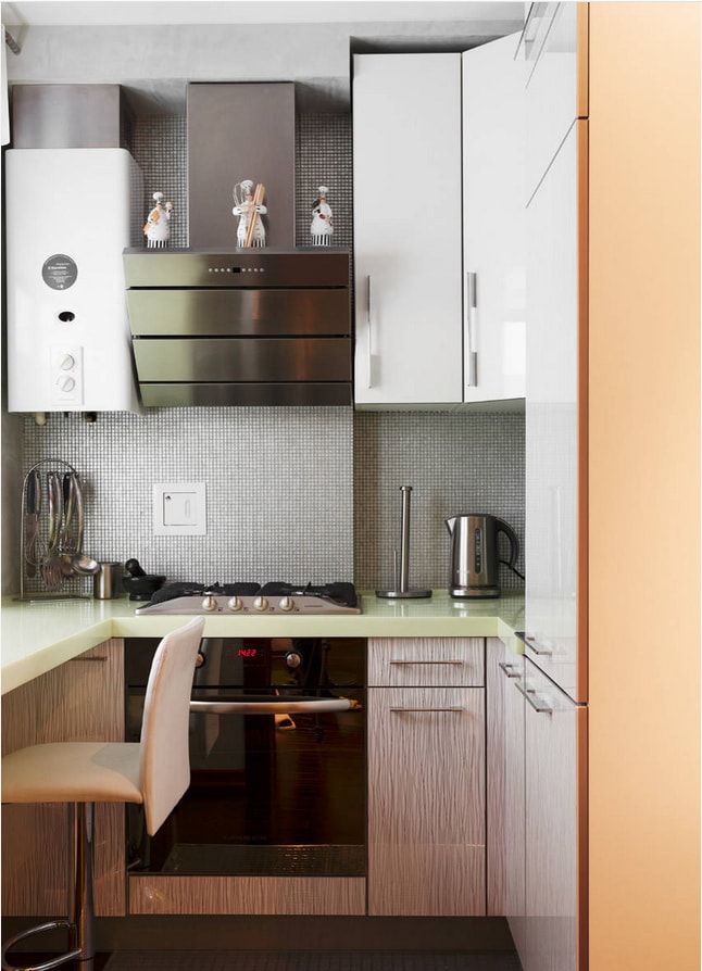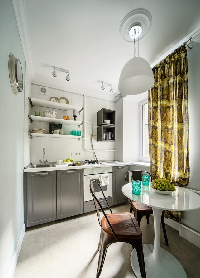 Comme le montre la pratique, une petite cuisine n'est pas une phrase. Et si vous voulez, désir et une approche rationnelle, vous pouvez faire une cuisine fonctionnelle et confortable, même avec sa petite taille.