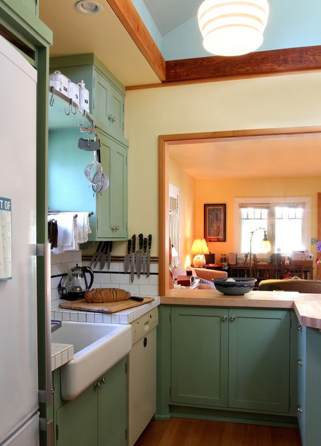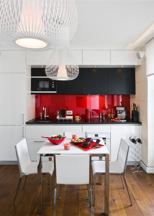 - Vous ne devez pas utiliser plus de deux couleurs dans le décor d'une petite cuisine, car être dans une telle pièce ne sera pas psychologiquement confortable.