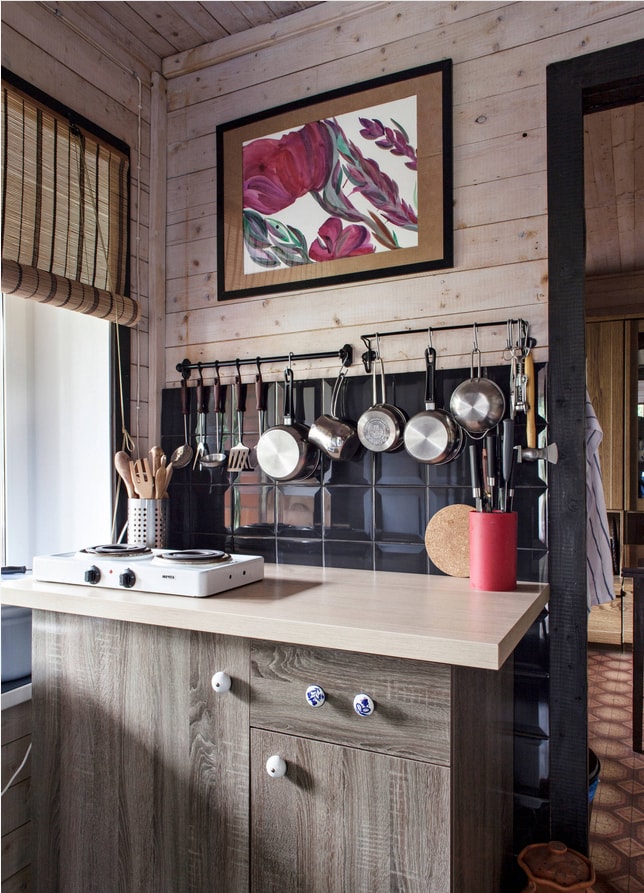 Avec la petite taille de la pièce, la lutte se poursuit pour chaque coin libre. Et chaque millimètre de surface qui profite à la ménagère de la cuisine est déjà une victoire.