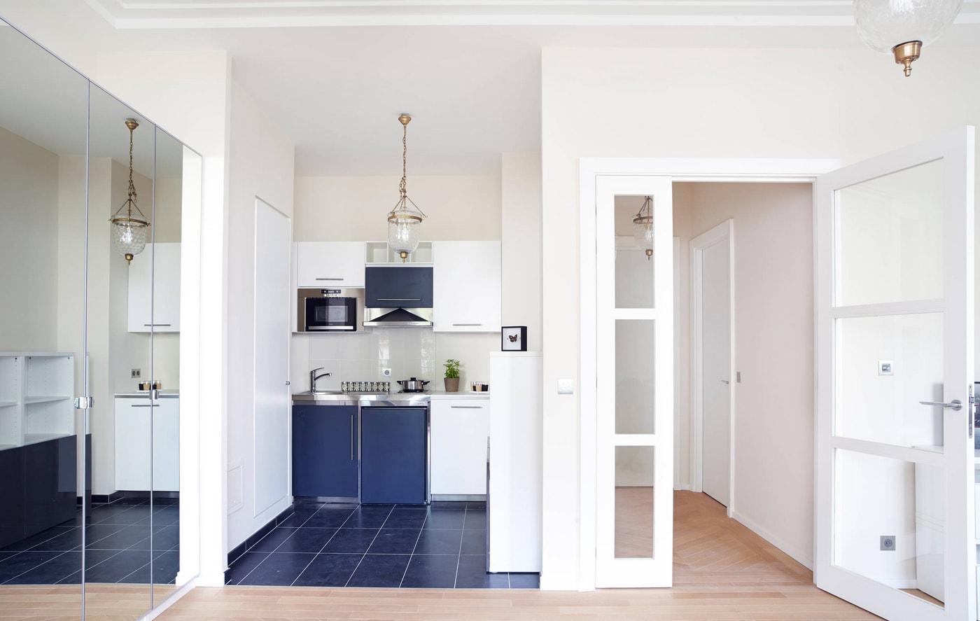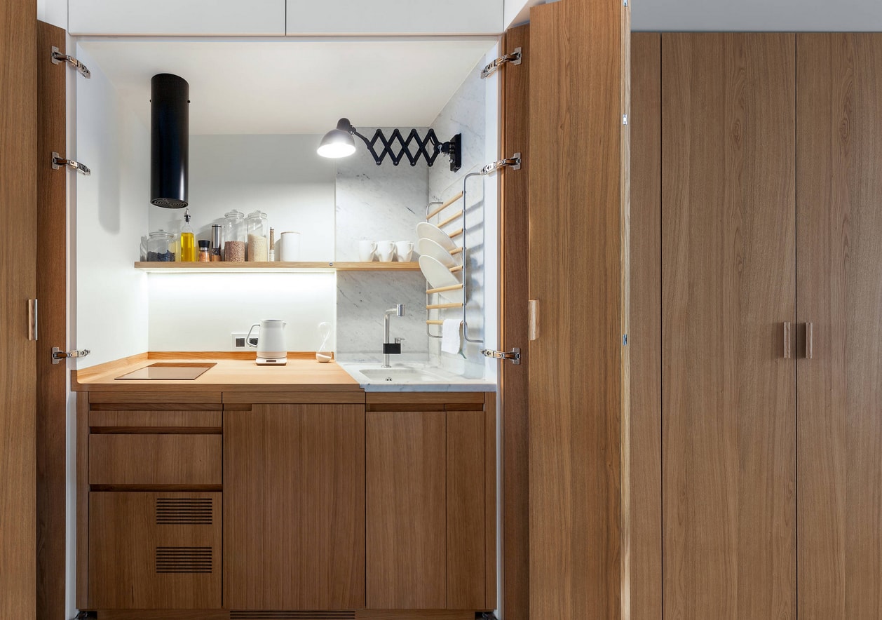 Mobilier intégré pour une petite cuisine - idéal pour économiser de l'espace.