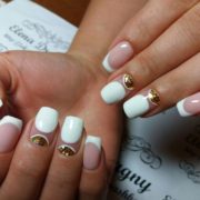En outre, sur les ongles courts, les motifs asymétriques ont fière allure, ce qui vous permet de les augmenter visuellement. Si vous le souhaitez, vous pouvez les compléter avec des formes simples, telles qu'un triangle ou même un carré. À leur tour, les cloutiers rappellent régulièrement un dessin appelé «espace négatif», qui présente de nombreuses similitudes avec la géométrie. Une telle solution sur les ongles courts ne semble pas moins attrayante.