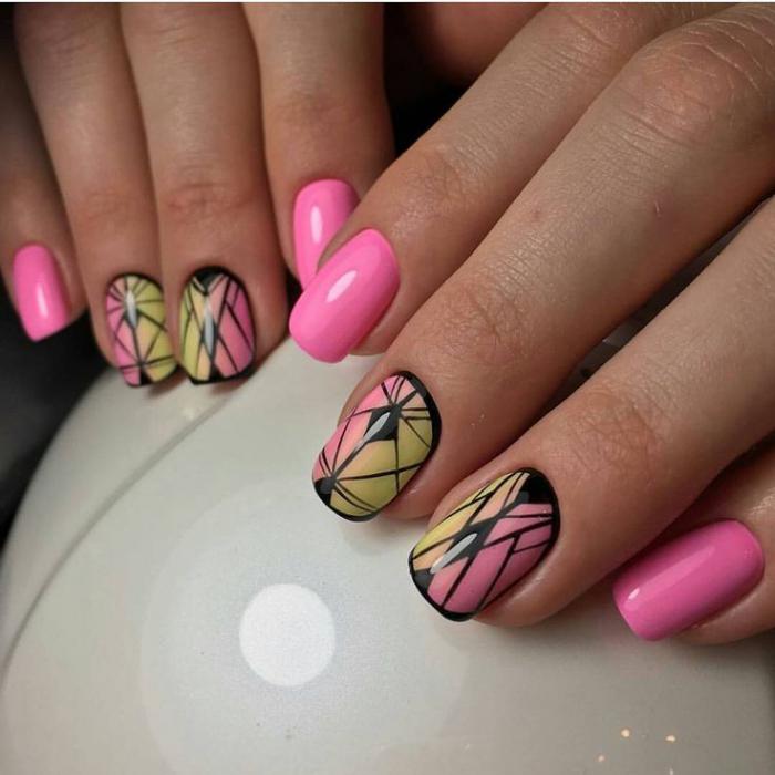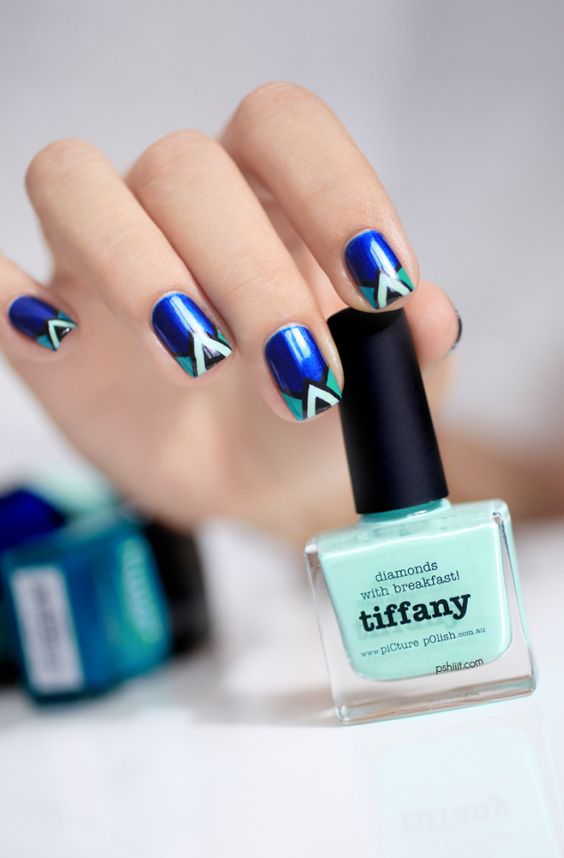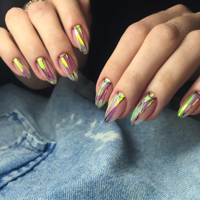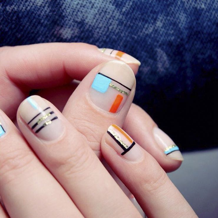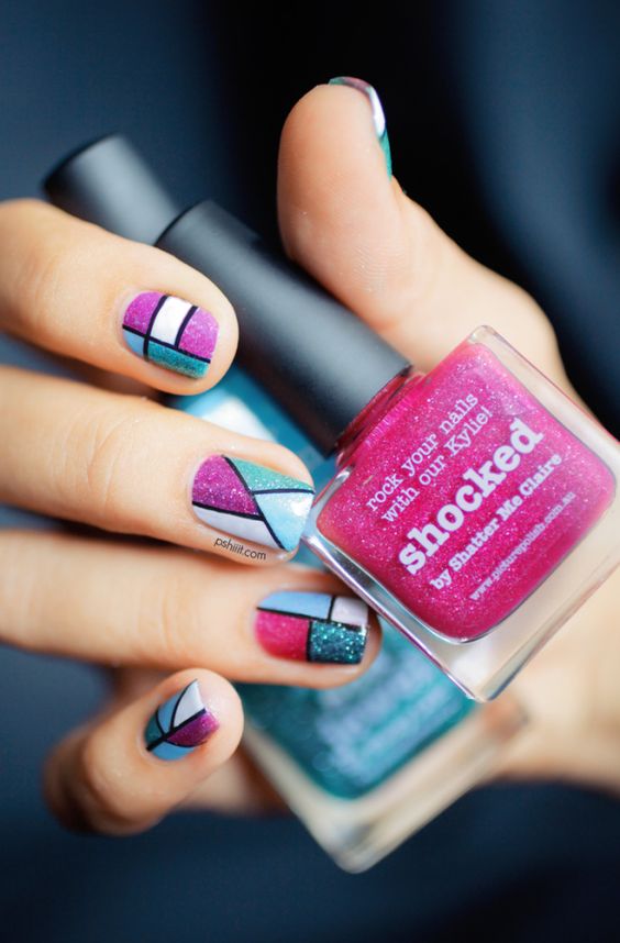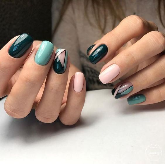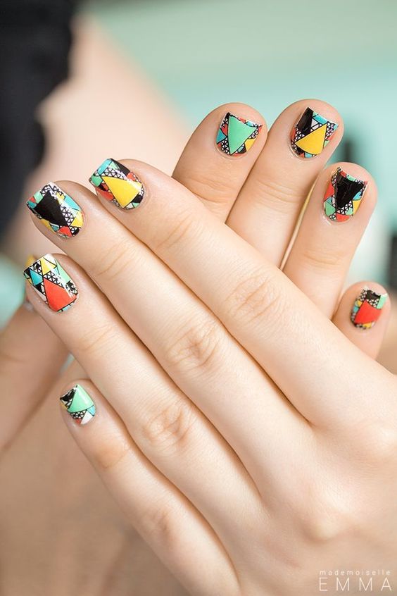La combinaison de plusieurs nuances dans un même design n’est pas une option pour toutes les fashionistas. Néanmoins, cela semble vraiment intéressant. Le plus souvent, cette combinaison est choisie en été, quand il y a une soif d'expérimentation. Une variété de motifs ethniques, de triangles, de carrés, de rayures - tout cela devient immédiatement pertinent et particulièrement apprécié. De plus, ces options sont souvent combinées avec un dégradé et même avec un décor en forme de sable ou de paillettes. Chacun d'eux semble intéressant à sa manière.