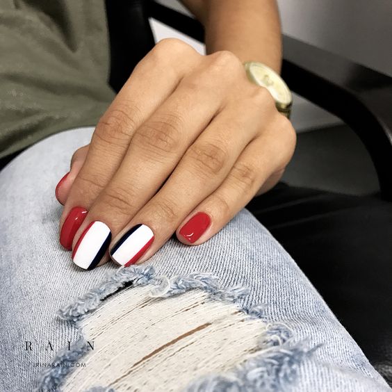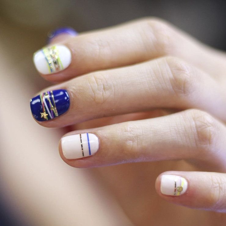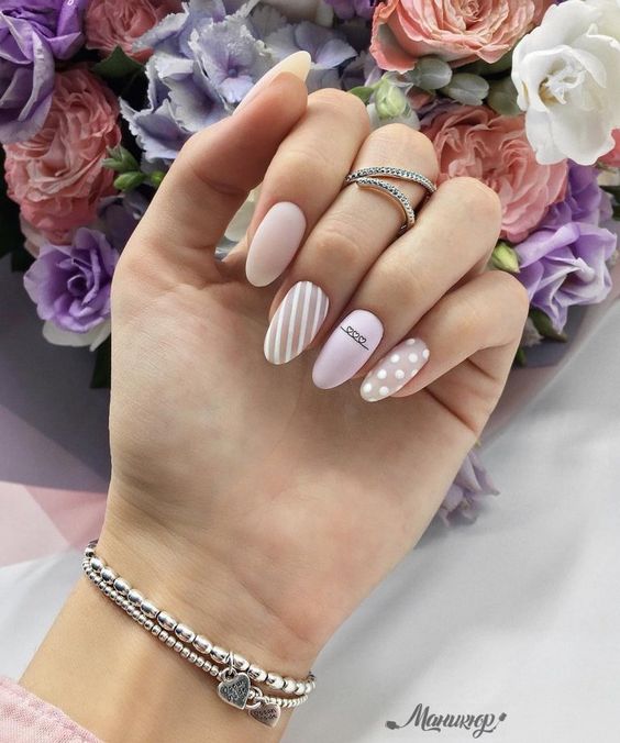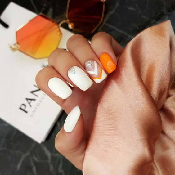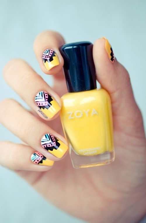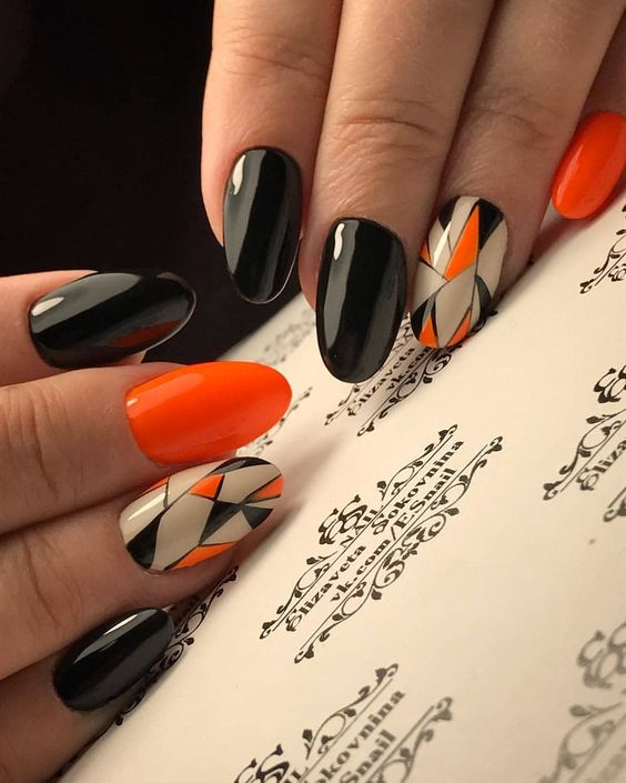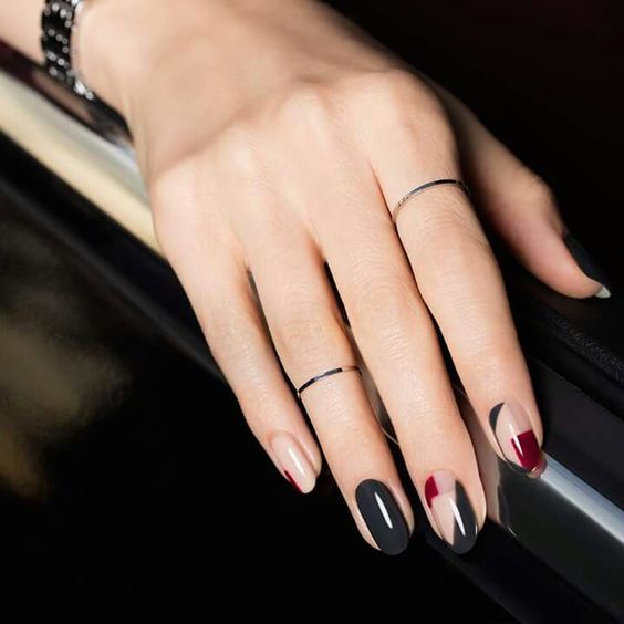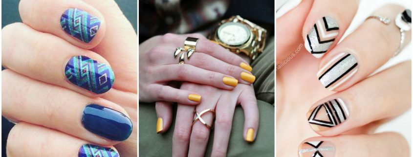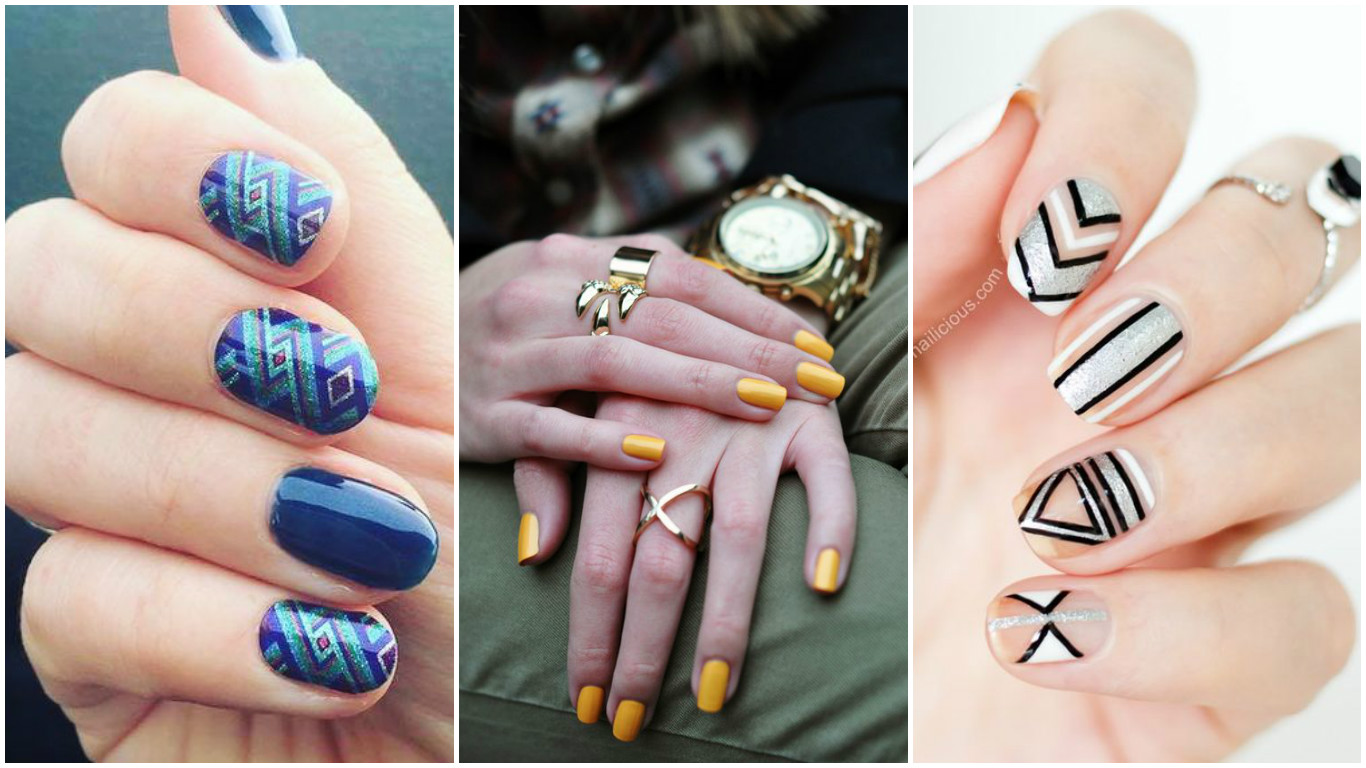 La combinaison de plusieurs nuances dans un même design n’est pas une option pour toutes les fashionistas. Néanmoins, cela semble vraiment intéressant. Le plus souvent, cette combinaison est choisie en été, quand il y a une soif d'expérimentation. Une variété de motifs ethniques, de triangles, de carrés, de rayures - tout cela devient immédiatement pertinent et particulièrement apprécié. De plus, ces options sont souvent combinées avec un dégradé et même avec un décor en forme de sable ou de paillettes. Chacun d'eux semble intéressant à sa manière.