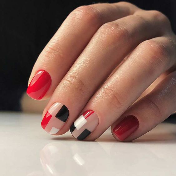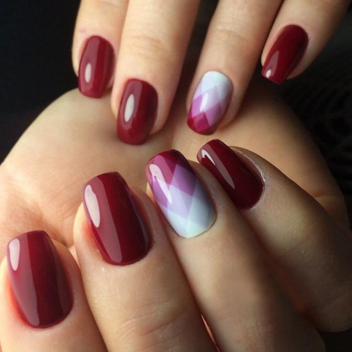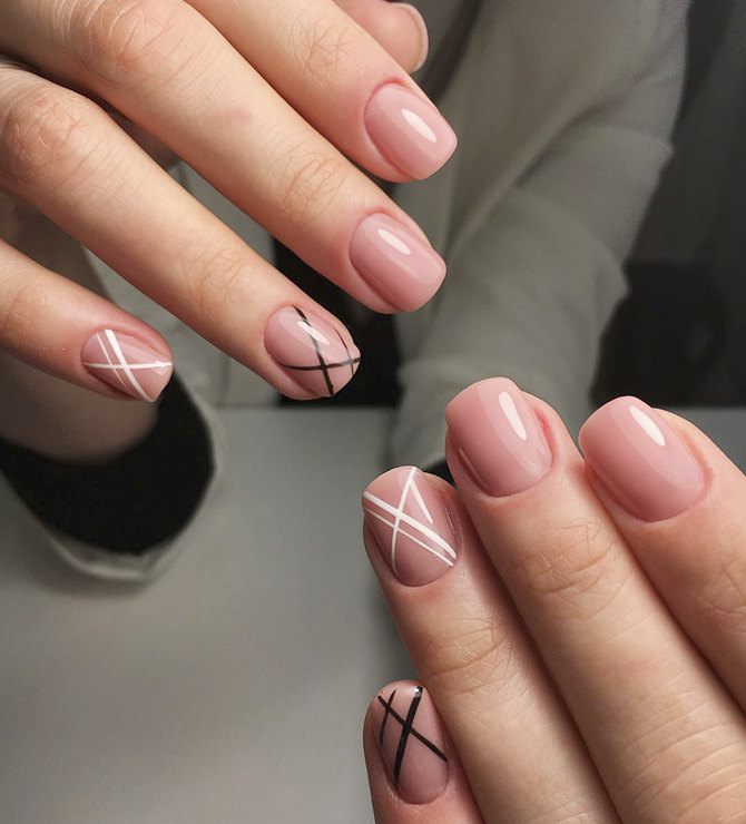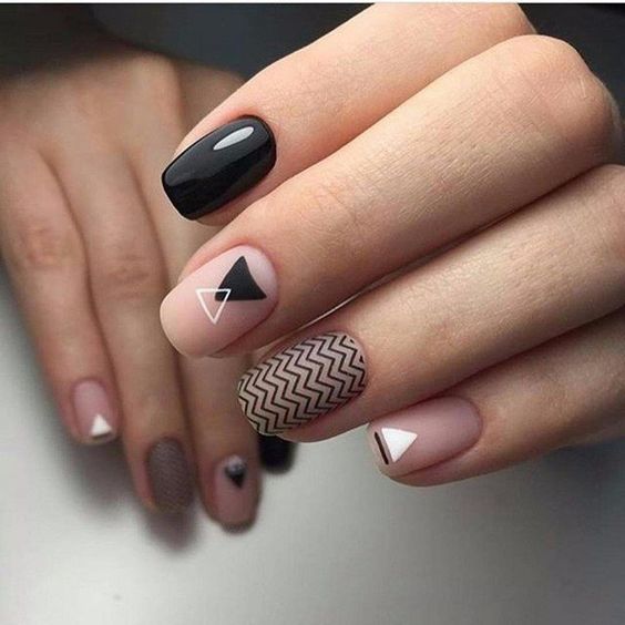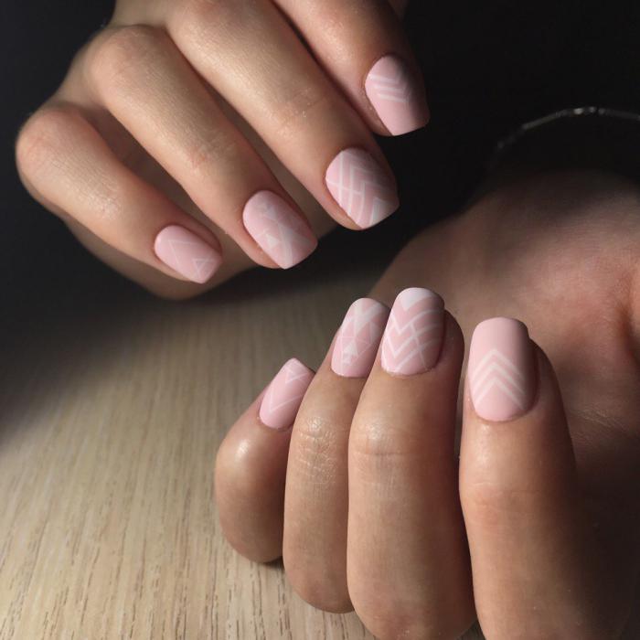 Contrairement aux autres options de conception, les motifs géométriques ont fière allure, même sur les ongles les plus courts. Et peu importe les nuances qui seront utilisées dans le processus. Mais il convient de noter que les dessins ne doivent pas être trop grands. Sinon, la conception semblera surchargée ou même ridicule. L'essentiel dans ce métier est de maintenir l'équilibre.