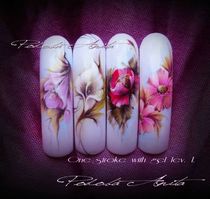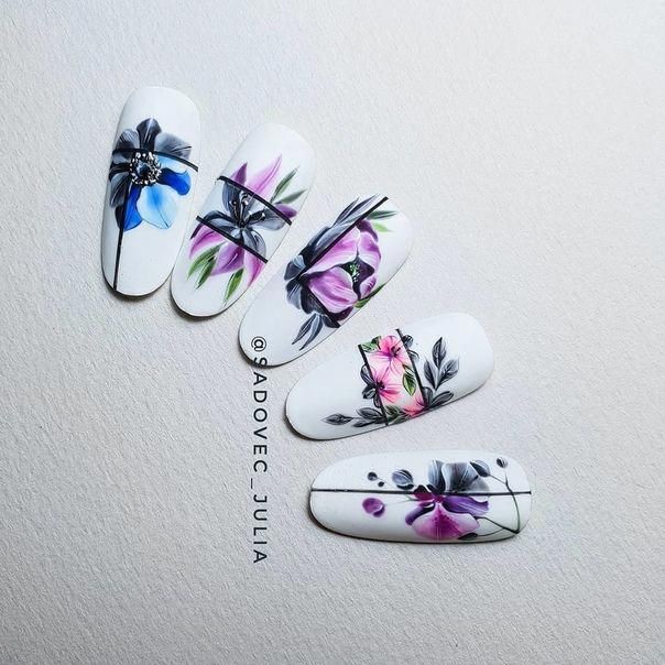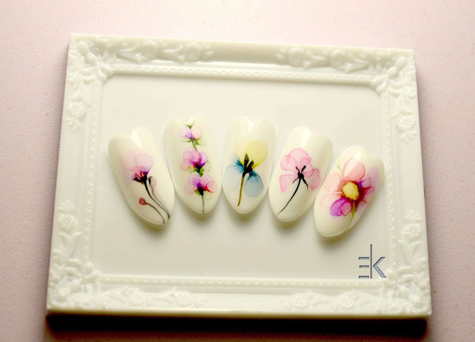 - Manucure aquarelle avec des fleurs.