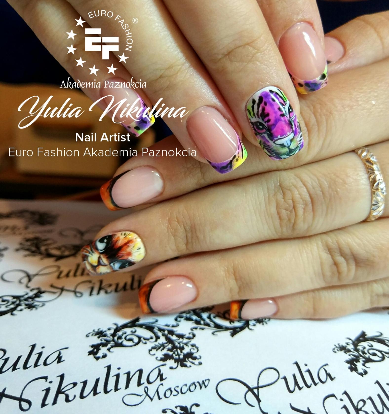 Tout d’abord, il convient de rappeler que pour éclaircir une nuance sombre en plusieurs tons, il convient de la diluer à l’aquarelle blanche. Ainsi, tous les éléments de l'ornement auront leur finesse dans les transitions. Mais ne vous laissez pas trop emporter, sinon le dessin deviendra trop blanchâtre et deviendra un paysage éclairé. Lorsque vous appliquez le ton souhaité, vous pouvez utiliser la combinaison de couleurs immédiatement sur la plaque à ongles. Pour cela, un pinceau sera un excellent assistant. C’est elle qui donnera le vague et l’aidera à obtenir le résultat souhaité. L'épaisseur des brosses peut varier. Cela dépend de la taille de l'image. Si l'image remplit presque tout l'ongle, il vaut la peine de rendre hommage aux pinceaux plus épais. À la fin du travail sur l'ornement, vous ne devez pas souligner tous les contours et tous les éléments de l'ornement. Ainsi, votre œuvre d'art deviendra translucide et légère. Pour obtenir un effet d’aquarelle, évitez d’épaissir le contour et de caresser tout l’ornement. Il vaut également la peine de choisir des pinceaux de haute qualité et professionnels conçus spécifiquement pour travailler avec des peintures à l'aquarelle pour la manucure. Lors de la création d'un dessin, tous les maîtres n'ont pas de lignes droites. Par conséquent, il est nécessaire de prendre en compte le conseil principal - la brosse doit être maintenue perpendiculairement à la plaque à ongles.