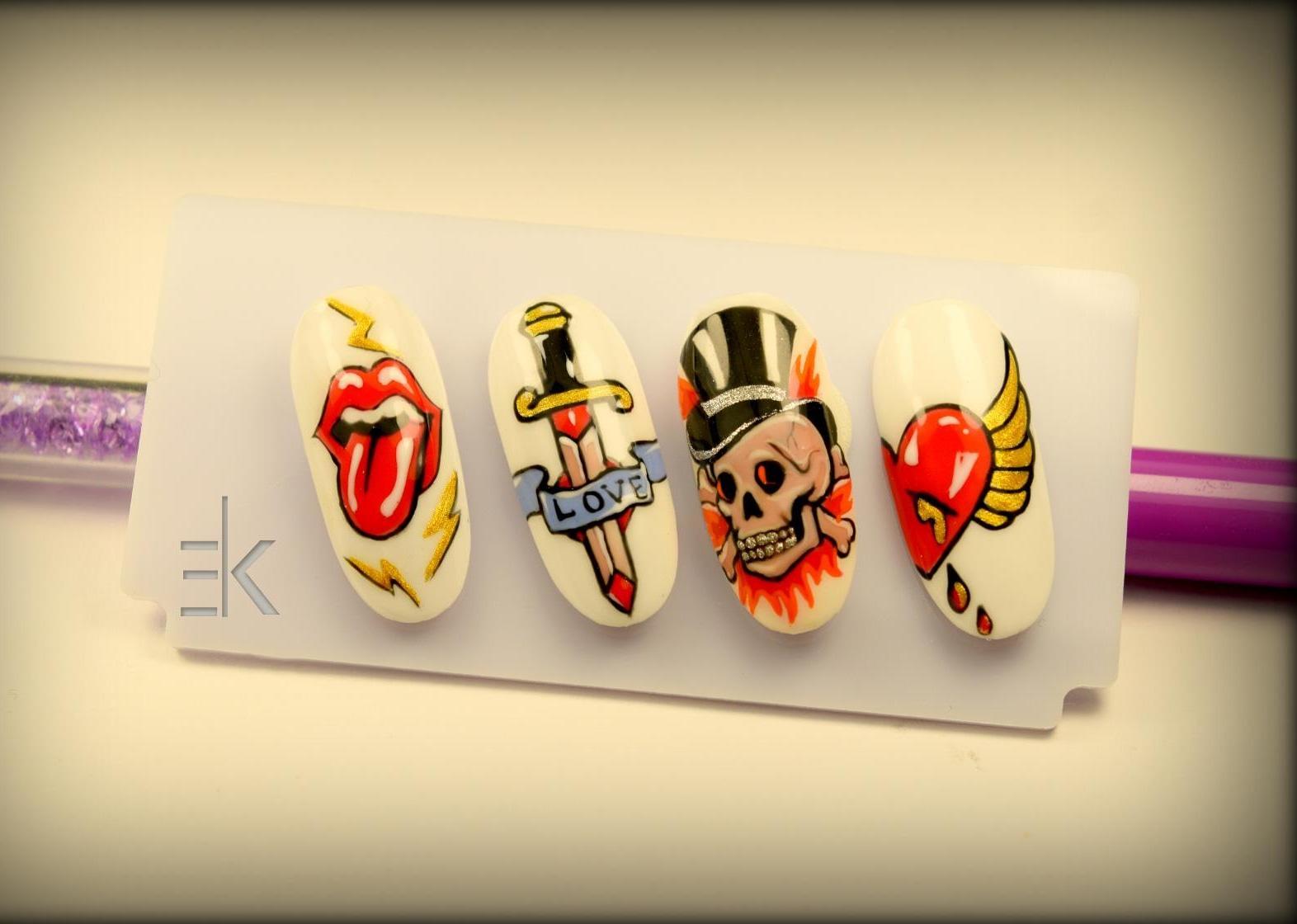Pour appliquer la photo, vous n'avez pas besoin de mouiller la plaque à clous. La composition légère de l'aquarelle elle-même produit l'effet recherché. Avec son aide, toute la base du prétendu ornement est remplie. Pour ce faire, privilégiez les tons clairs des peintures à l'aquarelle, déjà diluées à l'avance avec de l'eau. La texture liquide est appliquée assez doucement sur le ton principal, ce qui permet une transition en douceur des nuances. Certaines zones sont facilement mises en évidence, et là où il est nécessaire de donner une ombre à l’ornement, il convient d’ajouter le bon ton avec des mouvements légers. L'ensemble du flux de travail ressemble au travail réel de peinture d'un artiste. La seule différence est l'emplacement et la taille de l'image. À l'aide de combinaisons de couleurs, les ombres nécessaires et les particules nécessaires de l'ornement sont appliquées en alternance. Certains éléments de la photo restent simplement flous et flous.La chose la plus importante à considérer est que l’aquarelle sèche très rapidement. Par conséquent, travailler avec eux est rapide pour atteindre le résultat souhaité.