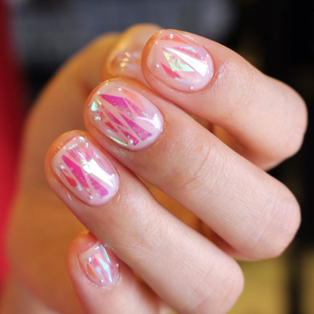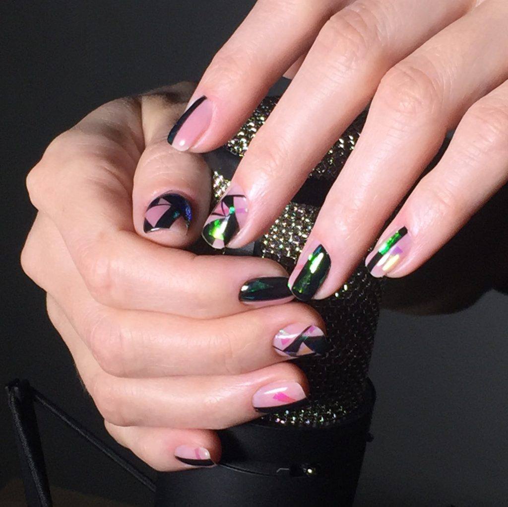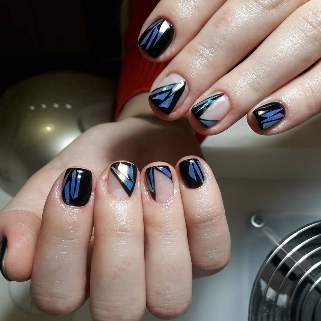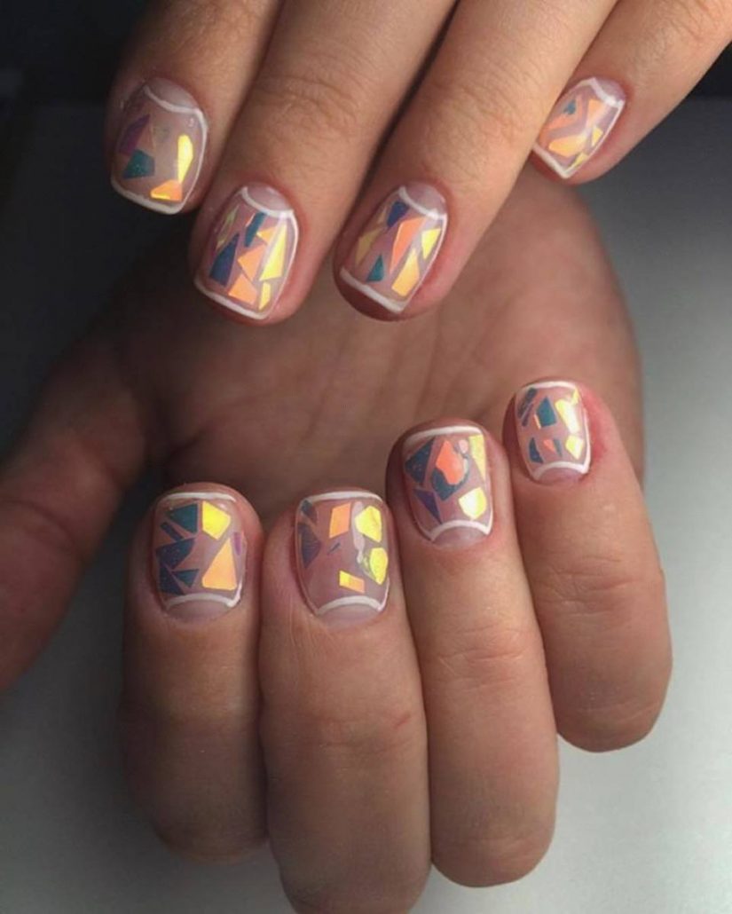Manucure "verre brisé". Fragments d'ongle spectaculaires
