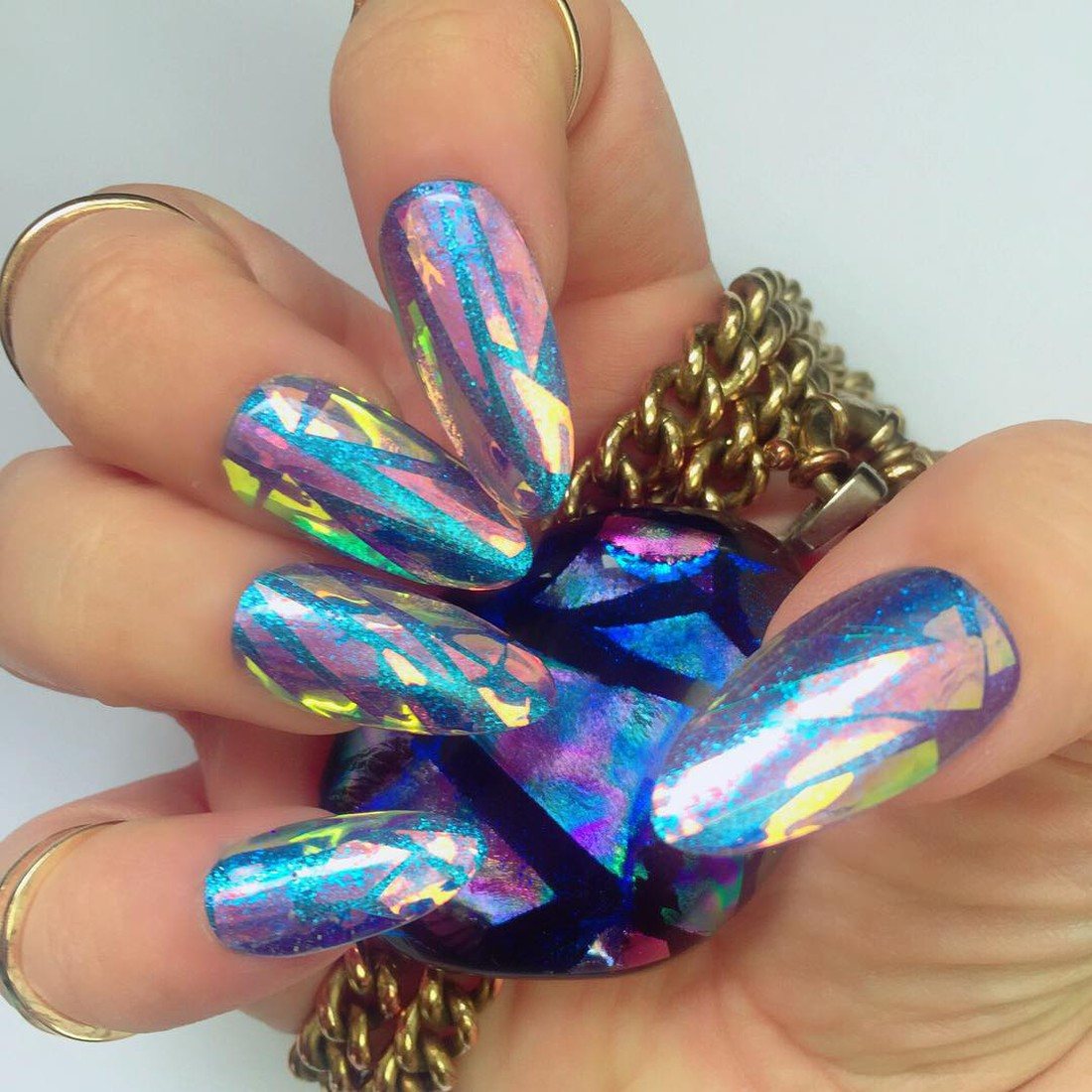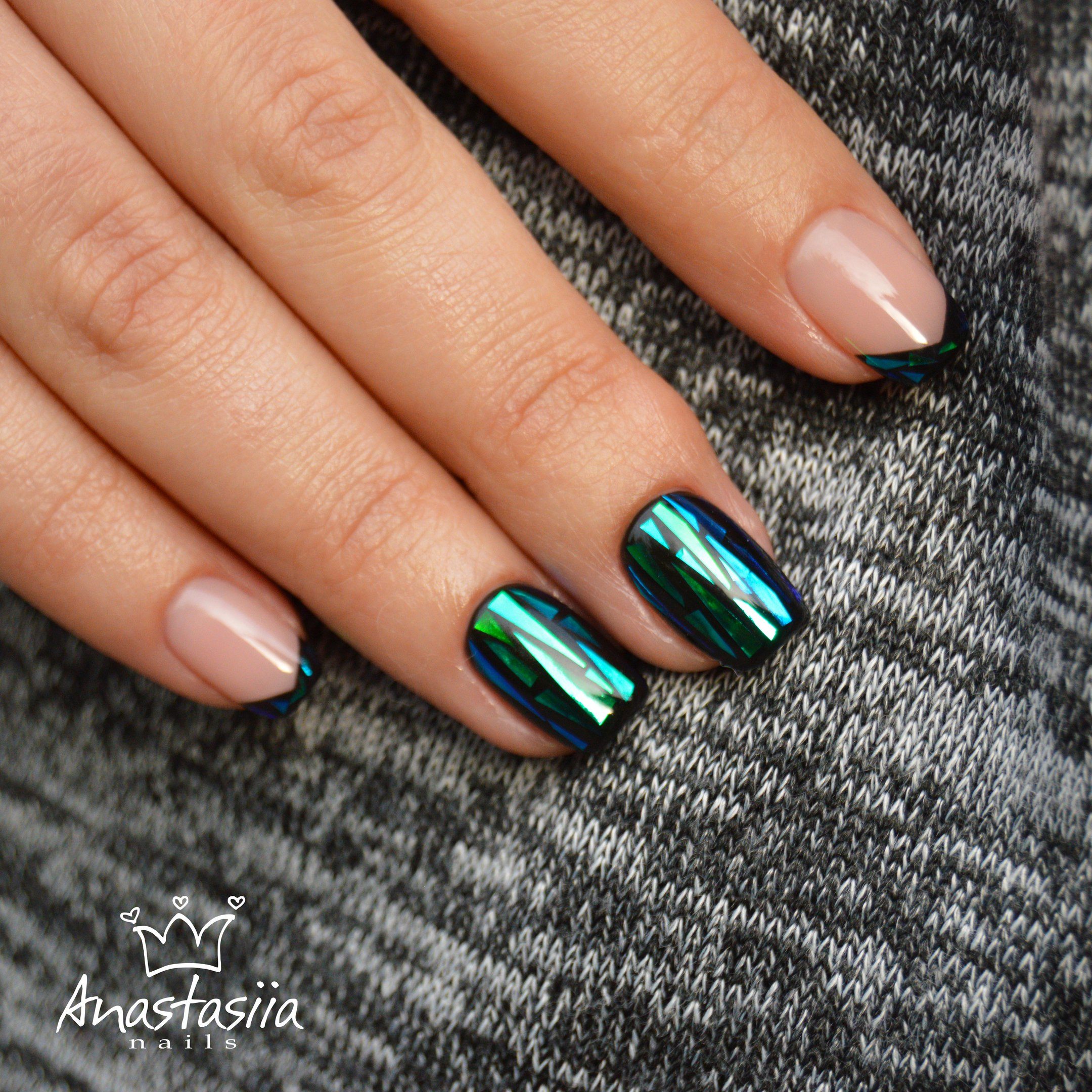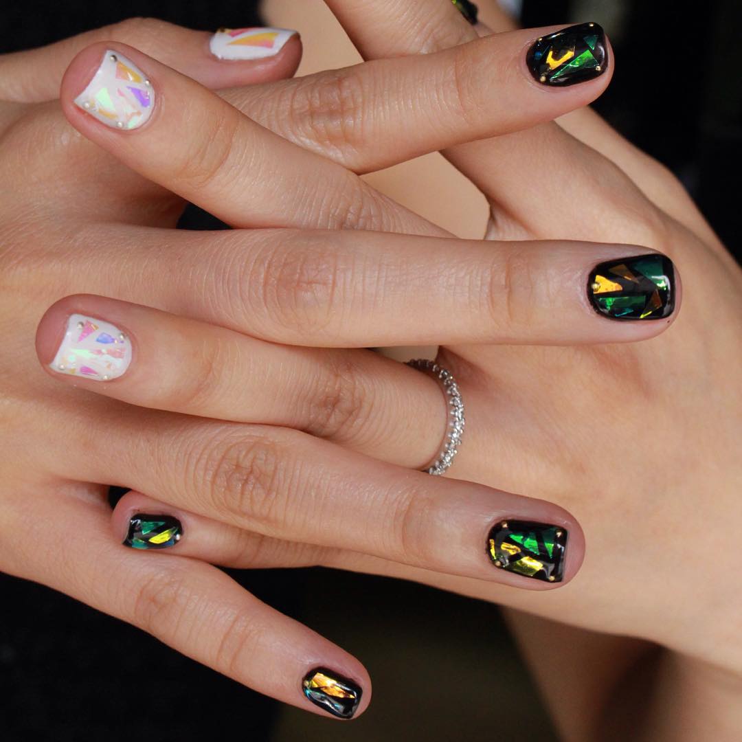 Manucure "verre brisé". Fragments d'ongle spectaculaires