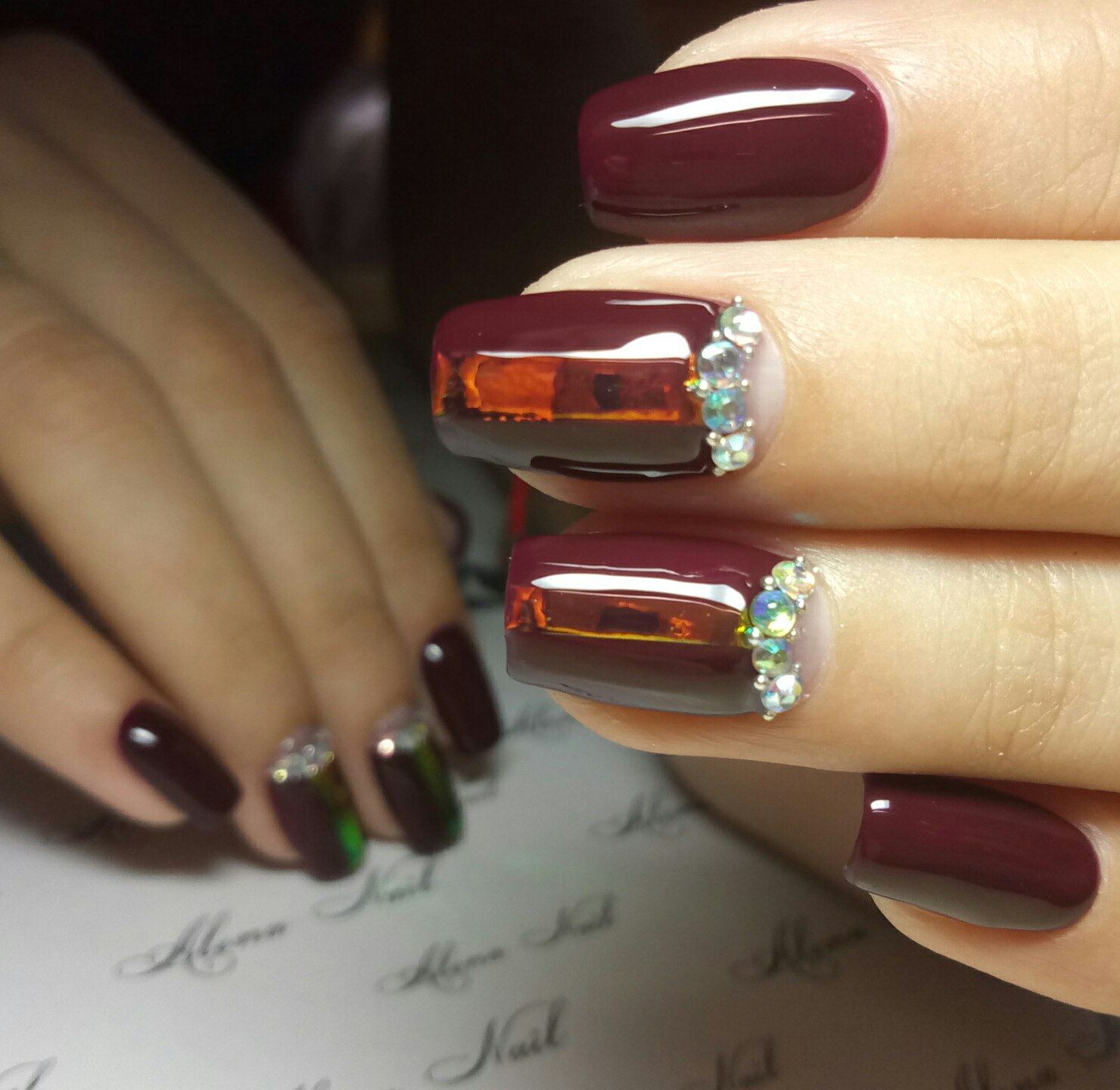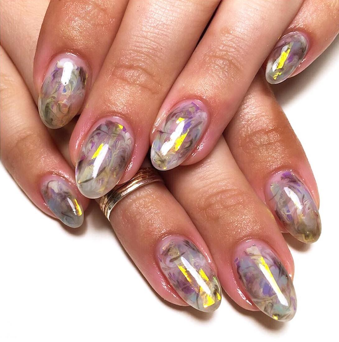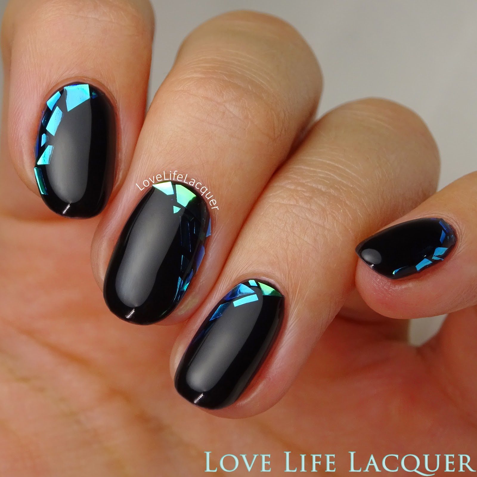 Manucure "verre brisé". Fragments d'ongle spectaculaires