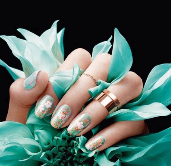 La manucure printanière avec des roses le 8 mars a l’air doux et simple, mais festive. En principe, toutes les fleurs ont fière allure sur les ongles: orchidées, jonquilles, coquelicots, mimosas, chrysanthèmes, pivoines, marguerites. Puisque les fleurs dans la nature sont dans des couleurs complètement vives et inimaginables, le champ pour expérimenter la manucure de vacances le 8 mars est illimité. Les chefs-d'œuvre floraux sur les ongles aux couleurs pastel sont incomparables. De la verdure fraîche sur la plaque à ongles donne vraiment la sensation de quelque chose de léger, d’enthousiaste. De délicates nuances de fleurs blanches sur les ongles apporteront une belle imagination printanière.