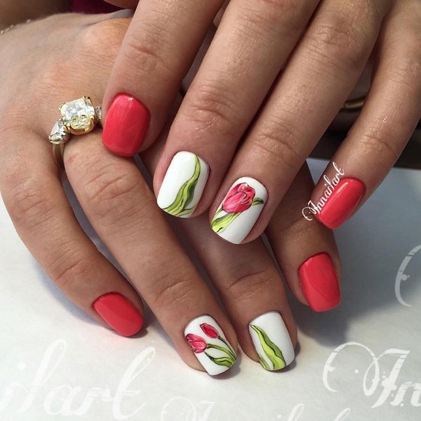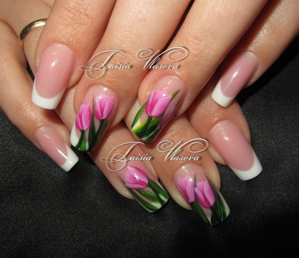Toutes les associations de vacances sont associées aux tulipes. Leur magnificence multicolore symbolise l’apparition du premier mois de printemps. Les tulipes créent une ambiance merveilleuse et gaie, même sur les ongles. En regardant les fantasmes printaniers de manucure avec des tulipes, seules des pensées positives viennent. Et ce n’est pas difficile pour un spécialiste de créer une telle manucure. Le 8 mars, les tulipes sont chères, mais elles seront toujours présentées à presque toutes les femmes. Eh bien, si vous devenez propriétaire d'un bouquet composé d'autres belles fleurs, alors ne vous découragez pas! Une manucure avec des tulipes est disponible pour tout le monde. Il est facile de jouer même à la maison et avec vos propres mains.