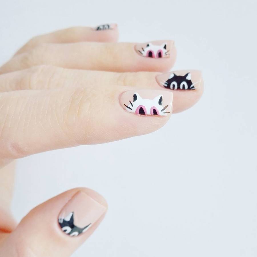 De plus, il n'a pas besoin d'être sombre et intimidant. Votre tesson est capable de sourire adroitement et gentiment ou même de cligner des yeux. Une manucure peut être complétée par l’image de fleurs, d’arcs ou d’autres choses mignonnes.