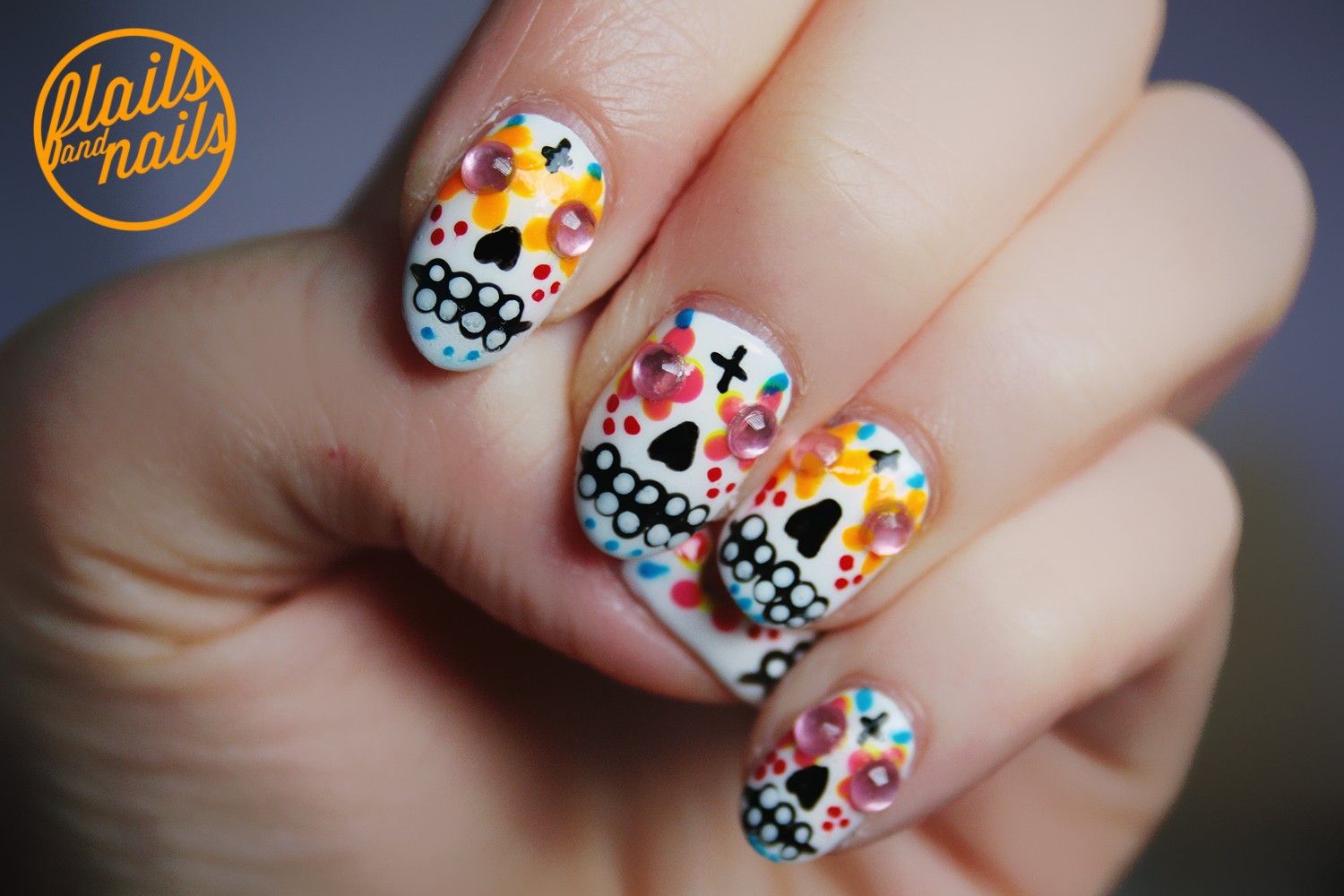 Les dessins classiques de Halloween incluent l'image d'un crâne. Il peut être représenté sur un clou d’accent ou orner l’ensemble du manche. Une telle conception est souvent complétée par toutes sortes d'éléments décoratifs (strass, paillettes, étincelles, feuille, etc.).