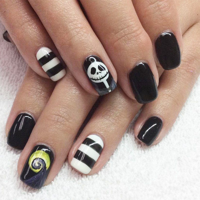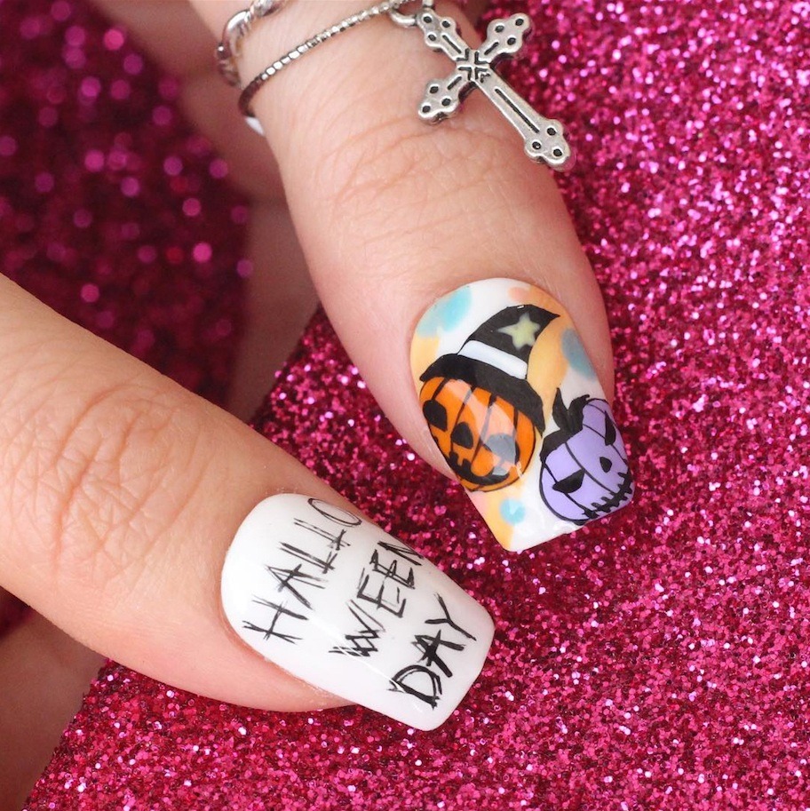 Les couleurs classiques qui composent les manucures d’Halloween sont le noir, le blanc, le rouge et l’orange. D'autres nuances peuvent être utilisées. Le plus important est qu’une image thématique appropriée s’affiche sur les ongles.