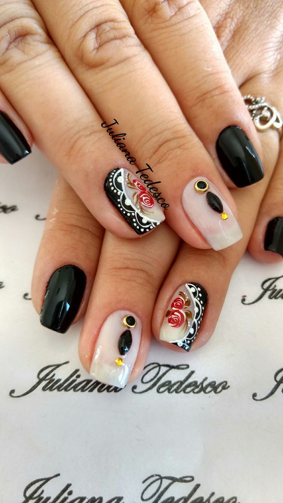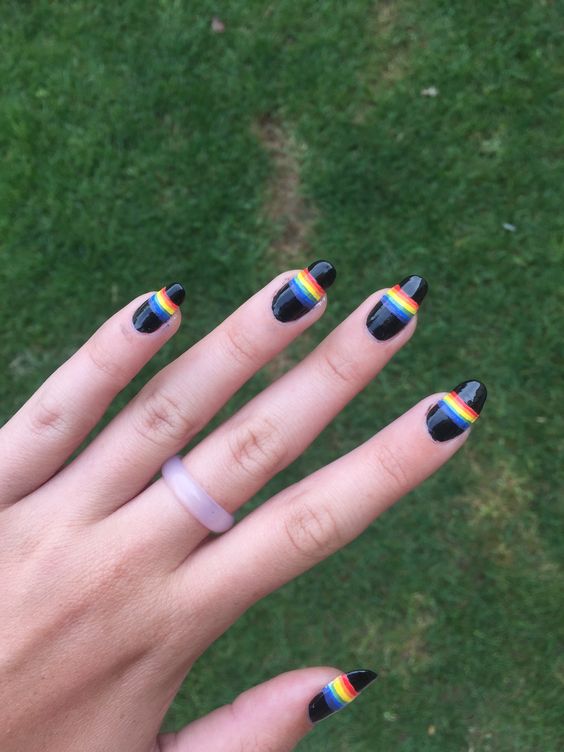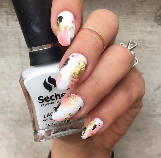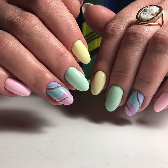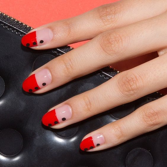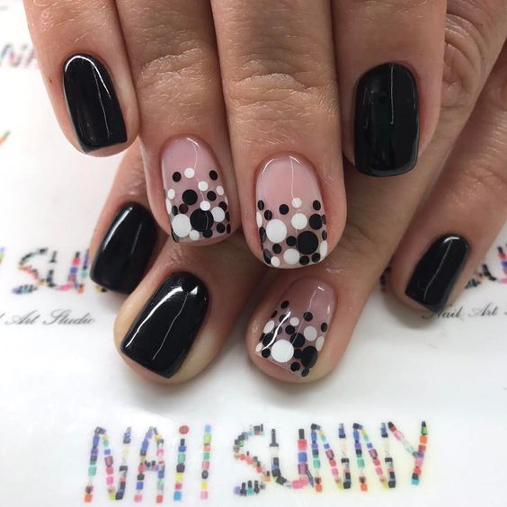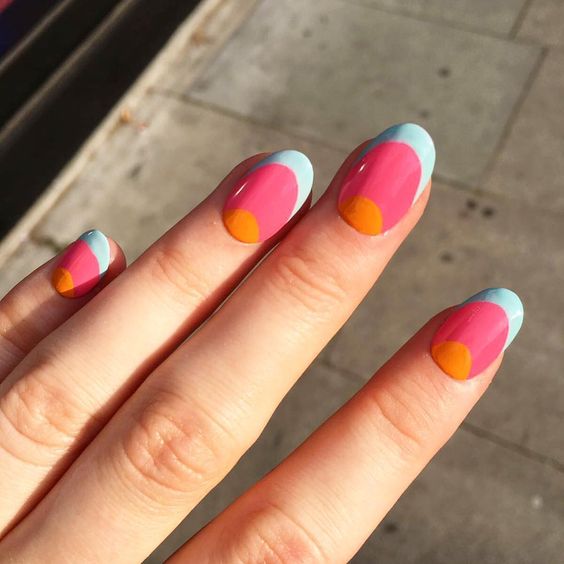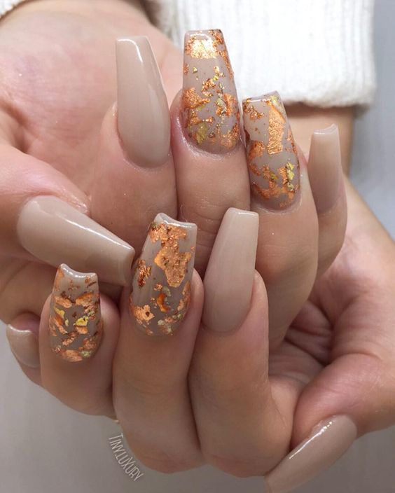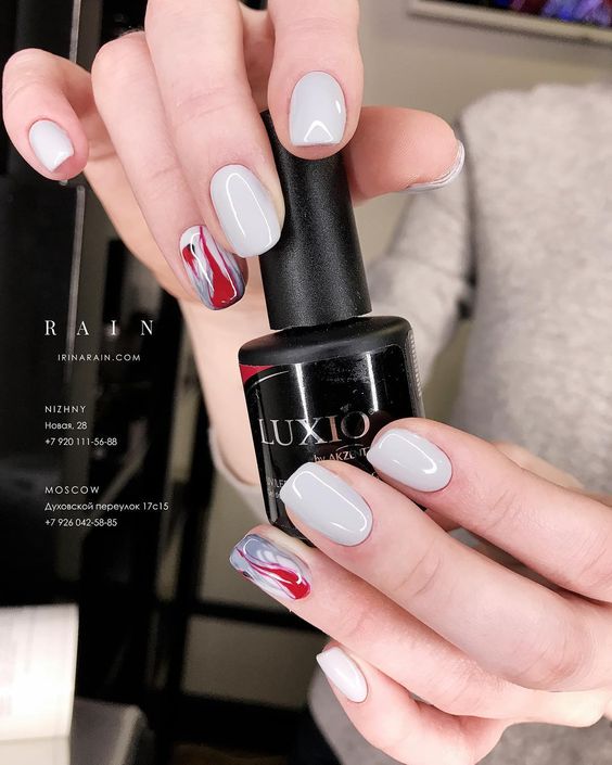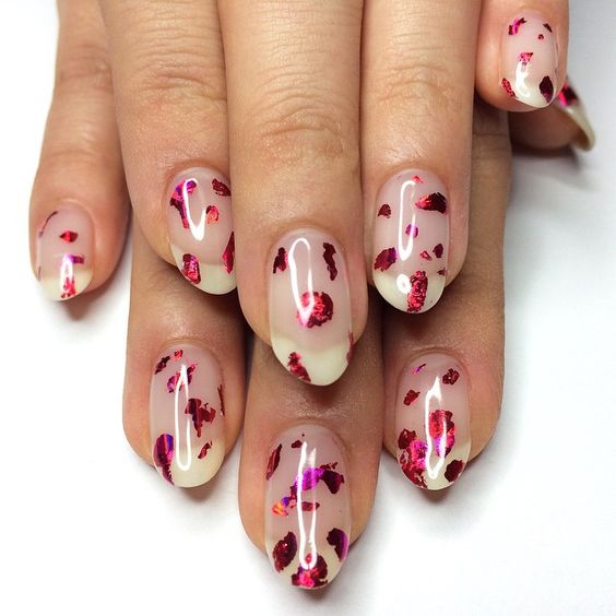 En outre, l’un des manucures populaires pour les ongles courts cet automne sera un motif coloré. C'est à ce moment que chaque ongle est peint dans une couleur individuelle différente et possède son propre motif distinct et unique. Mais si vous pensez que cette option est trop brillante, appliquez un vernis brillant sur un seul ongle. Utiliser du papier d'aluminium dans la conception des ongles cette saison ne sera pas non plus superflu. Des impressions, des rayures, des zigzags sur tous, plusieurs ou un seul clou complèteront votre manucure en septembre.