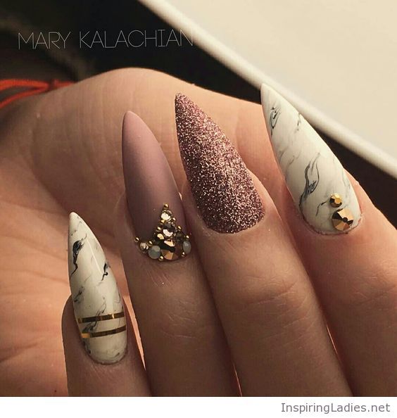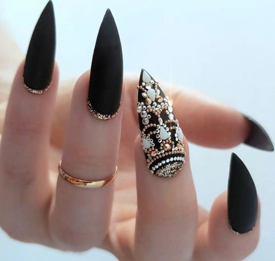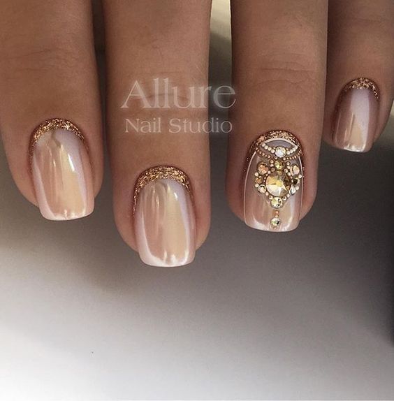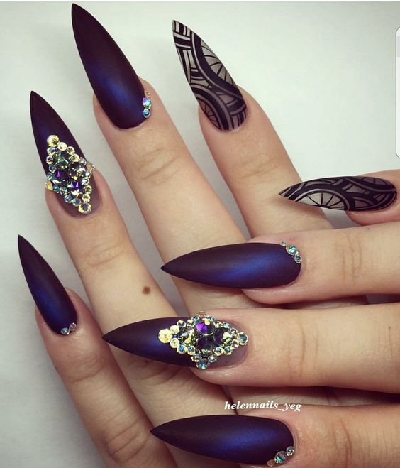 La conception des ongles en septembre ne peut se passer d’une variété d’étincelles. La manucure particulièrement festive doit être décorée avec une variété de cailloux et de strass qui donneront à votre manucure un look aristocratique à la mode. Mais notez qu’une mesure est nécessaire dans tout, alors pour décorer vos ongles, appliquez partiellement les strass, en complétant un dessin déjà fini ou décorez un ou deux ongles avec eux. Et une manucure de luxe vous est fournie. La manucure mate n'abandonne pas ses positions cet automne. En utilisant des couleurs chaudes, vous obtiendrez une manucure incroyablement à la mode, et si vous ajoutez une petite bande brillante de papier d'aluminium, vous obtiendrez un excellent effet. Dans la conception mate de cet automne, vous pouvez également utiliser des nuances de bleu profond, de vert et de bordeaux.