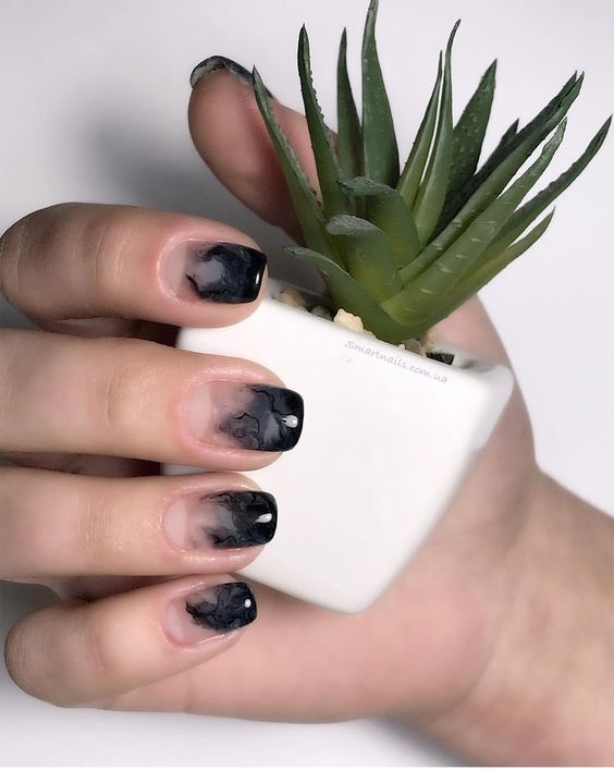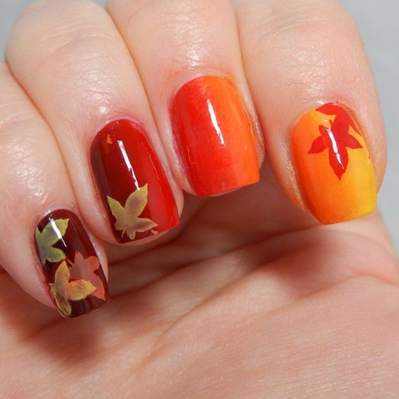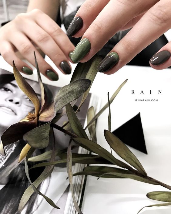 N'oubliez pas cet automne avec l'ombre sur gel-vernis, particulièrement en septembre, lorsque les fleurs estivales brillantes se transforment en des tons d'automne plus chauds. En utilisant ce design, il existe une énorme opportunité de variations avec les nuances et les couleurs. En décorant l’ombre avec des bandes de poudre acrylique ou un petit motif sur un ongle, ou en le complétant avec de petits strass, vous obtiendrez la manucure la plus en vogue de la saison.