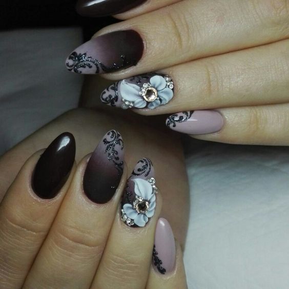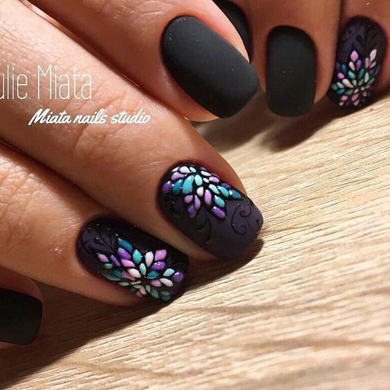 Une autre alternative aux couleurs pastel en 2026 est le noir. Les stylistes par temps froid en 2026 proposent de décorer les ongles avec du noir ou du vernis à proximité. Imaginez une manucure dans la couleur pourpre sombre du ciel nocturne.Si vous effectuez une combinaison intéressante sur vos ongles, diluez une manucure sombre, appliquez du vernis à ongles de couleurs pastel neutres sur un ou deux ongles tout en les décorant avec un petit motif en vernis foncé.