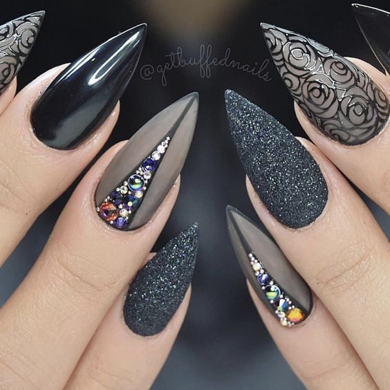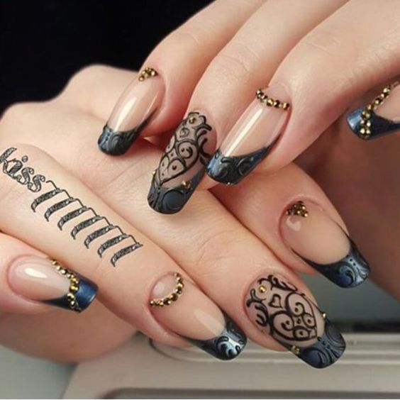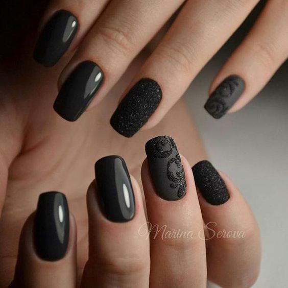 Manucure à la mode automne-hiver: photo d'art d'ongle noir