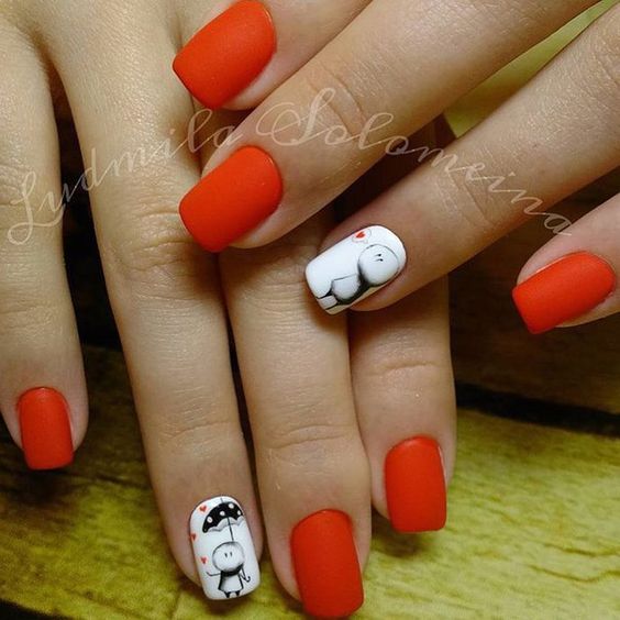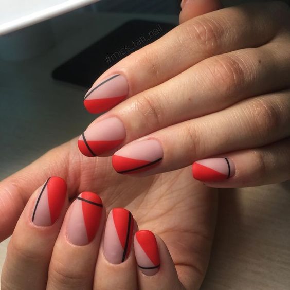 Si vous êtes une femme brillante et extraordinaire, optez pour une manucure rouge ultra-tendance et brillante. Les designers cette saison recommandent d’utiliser toutes les nuances de rouge. Vos ongles peuvent être bordeaux aristocratiques ou rouges juteux. Une telle manucure devrait être avec un minimum de décor. Option - quelques strass ou un dessin original et discret sur un ou deux ongles. La couleur rouge sans aucun ajout est belle, lumineuse et autosuffisante. La combinaison avec la couleur noire plus foncée du vernis est intéressante et très élégante sur les ongles rouges.