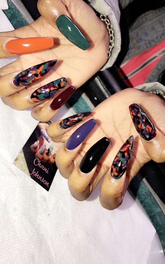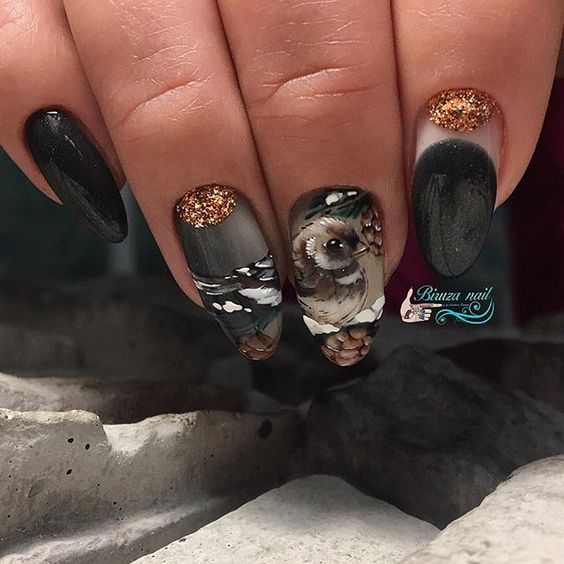 Parlons maintenant des impressions de mode de la saison automne-hiver 2026 sur les ongles. Les ornements géométriques floraux et vibrants sont restés la saison dernière. À leur place, les concepteurs proposent des images significatives. Si vous voulez que votre look soit à la mode et impeccable, utilisez une impression représentant une peau de serpent ou des pattes de léopard. Un motif d'échecs contrastant sera magnifique et pertinent pour votre manucure. Un paysage saisonnier, étendu à tous les doigts, attirera l'attention des autres. Par temps froid, la manucure dans des couleurs sombres avec des kamifubs, un marbré de marbre ou des motifs de couleurs contrastantes deviendront pertinents.