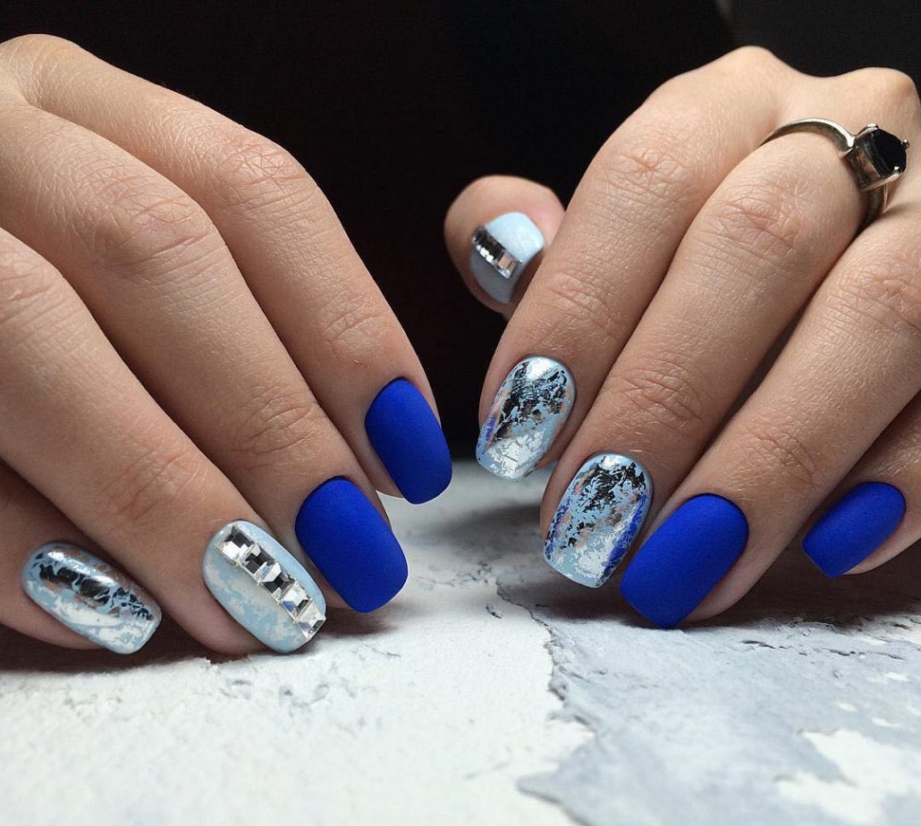 Cet automne et cet hiver, nous n'abandonnerons pas la populaire veste et manucure lunaire. Chaque année et chaque saison, de nouveaux ajouts à la conception sont ajoutés à une telle manucure. À l'automne-hiver 2026, le blouson habituel et le revers restent pertinents. Les bleus et les verts sont particulièrement populaires. Mais si vous souhaitez ajouter de la brillance et de l'originalité à une telle manucure, les éléments métalliques qui ornent la surface des ongles sont l'option la plus appropriée.