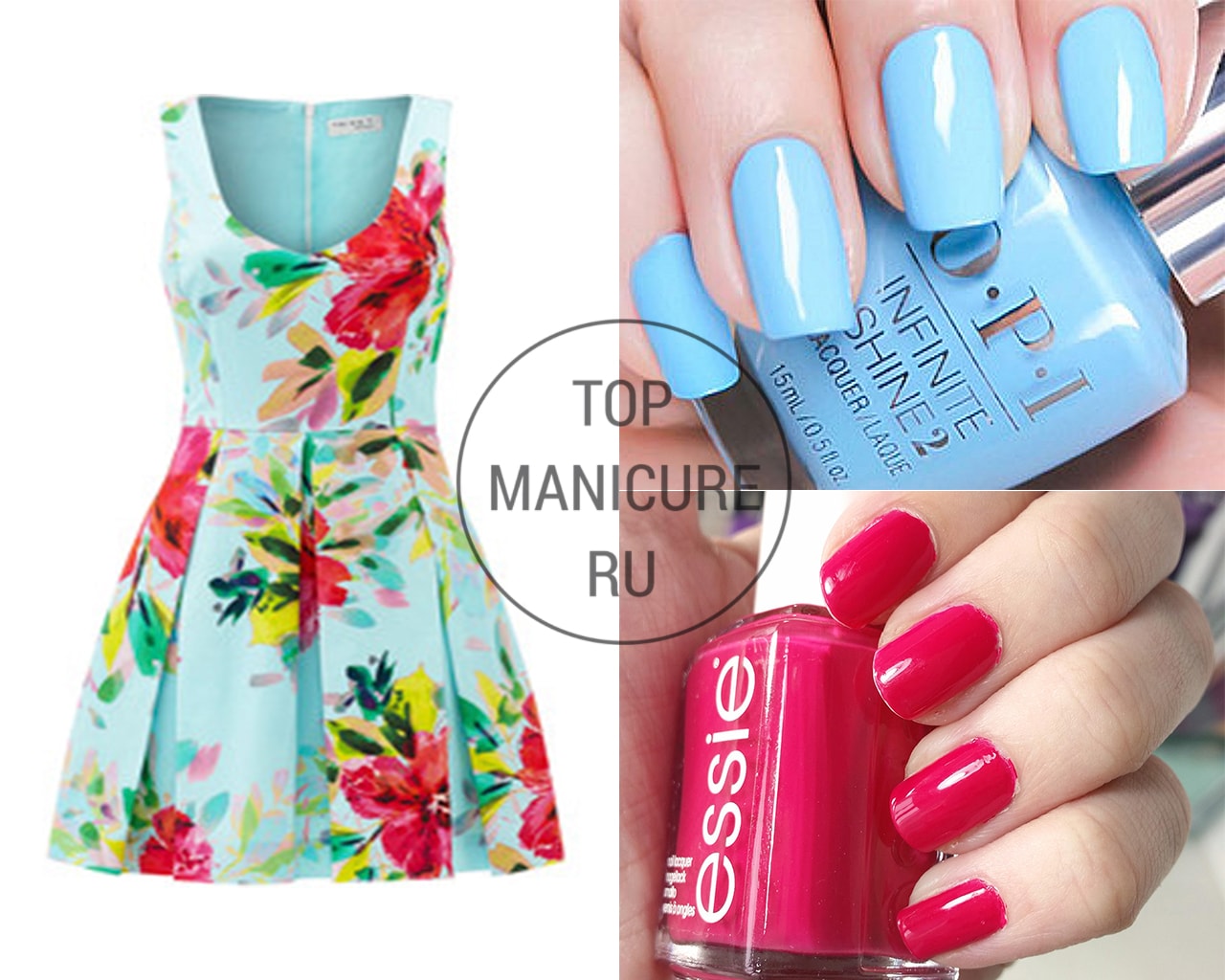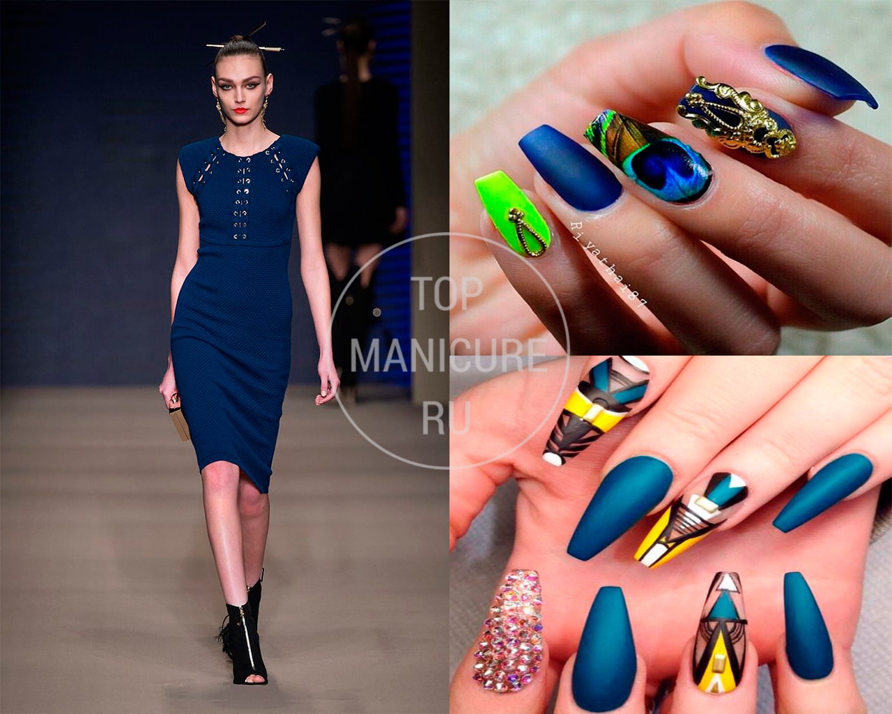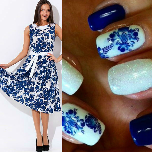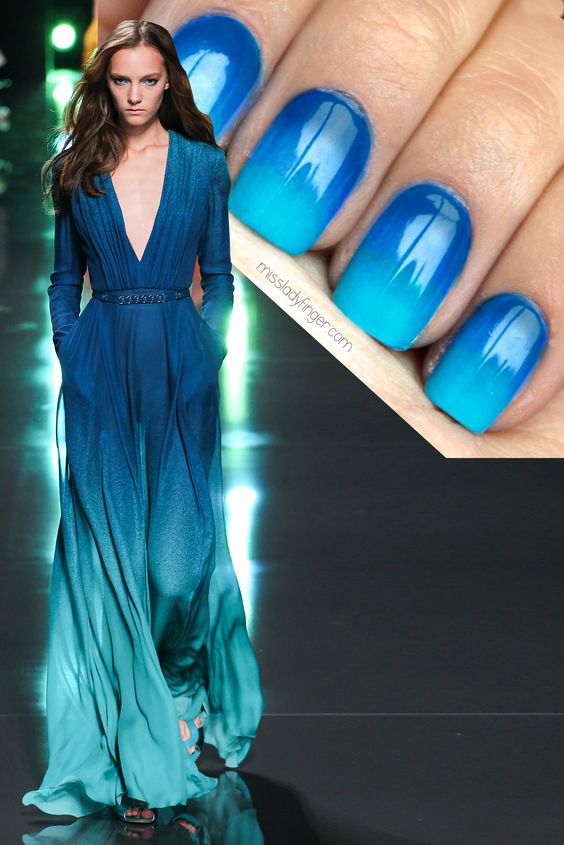 - Manucure sous une robe bleue