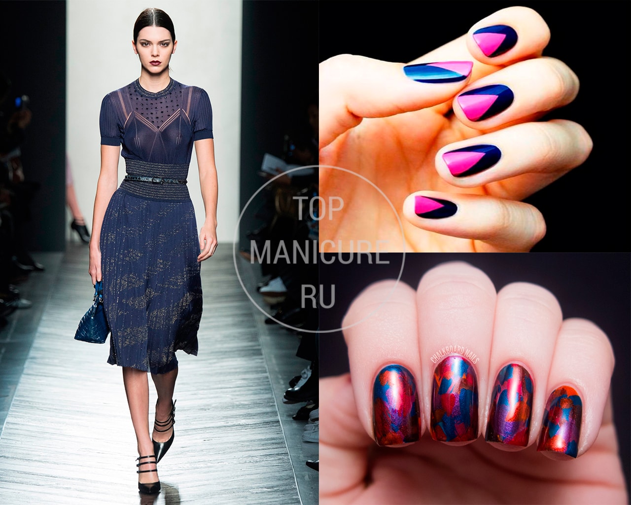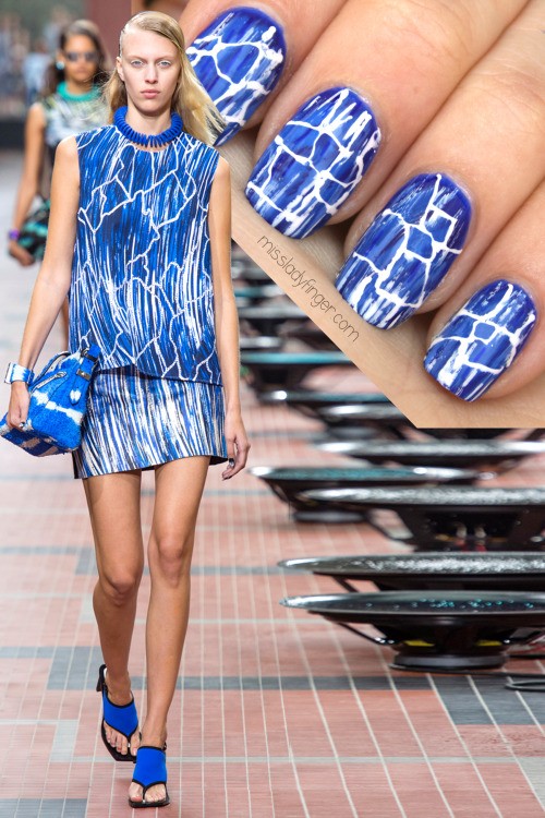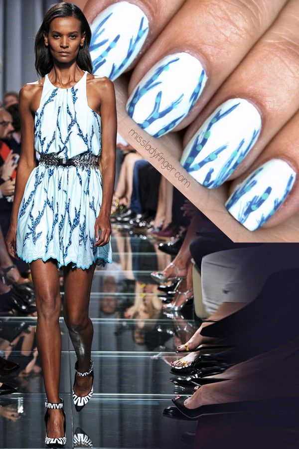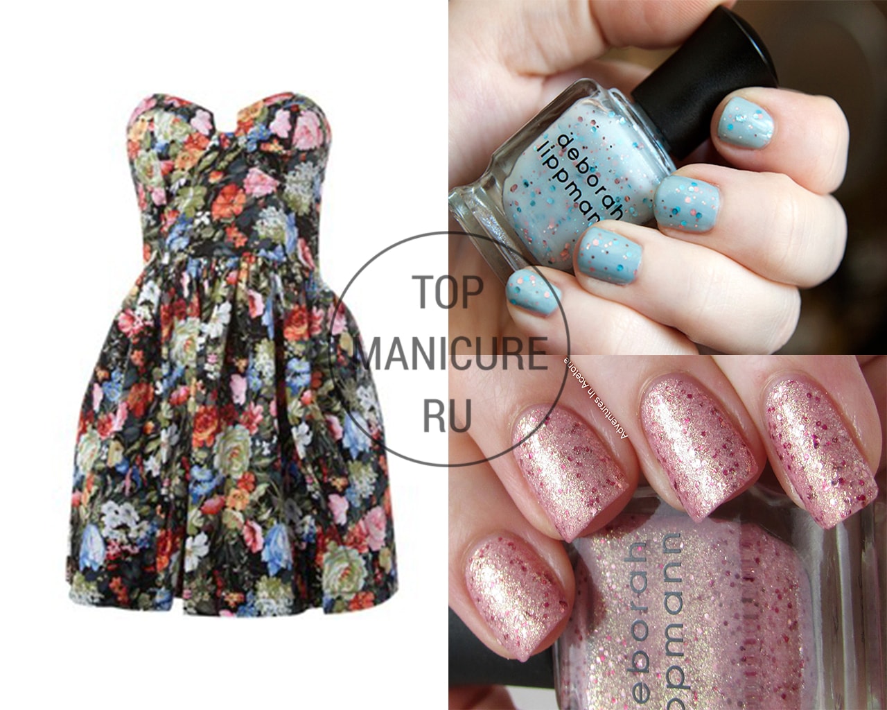 - Manucure sous une robe bleue