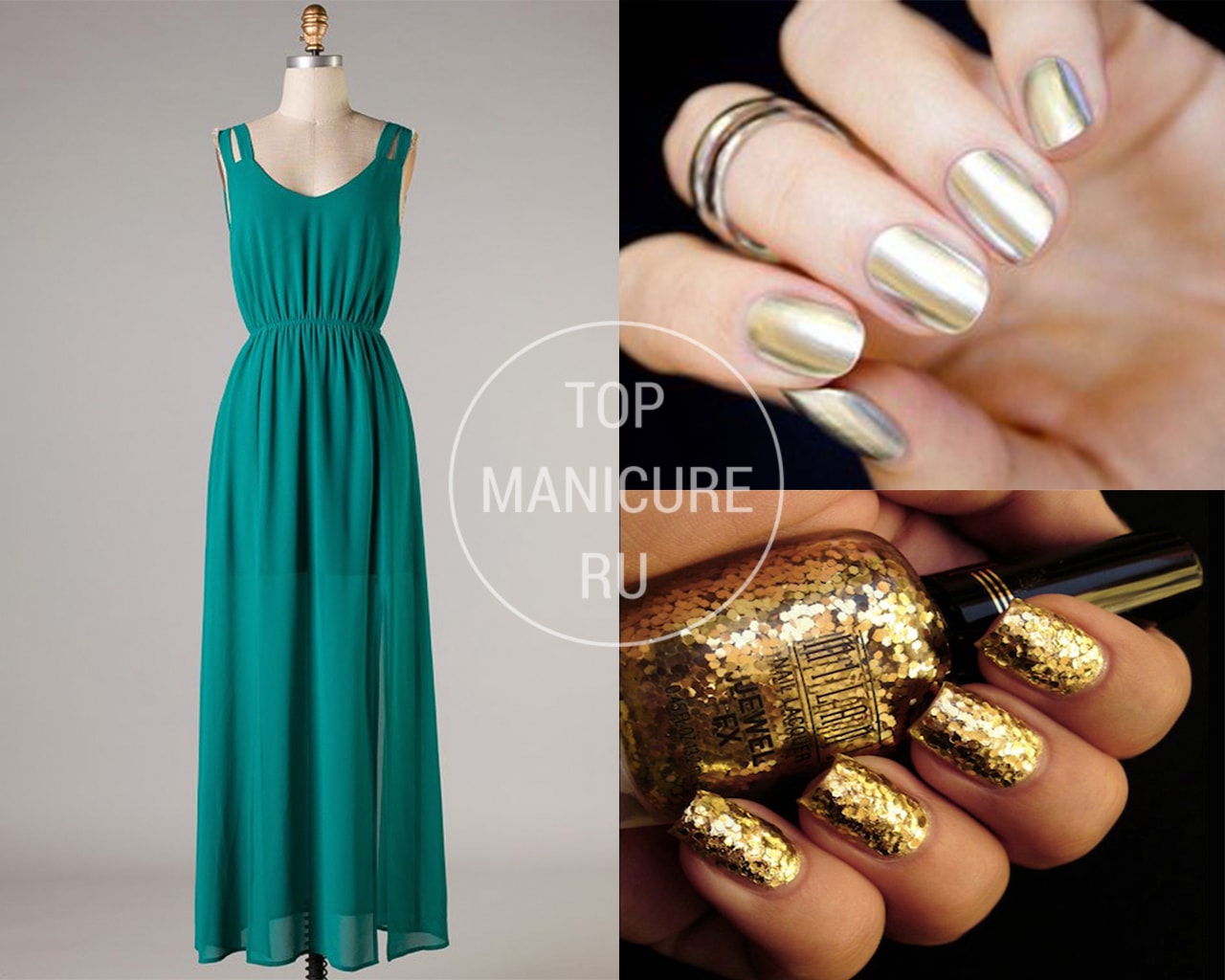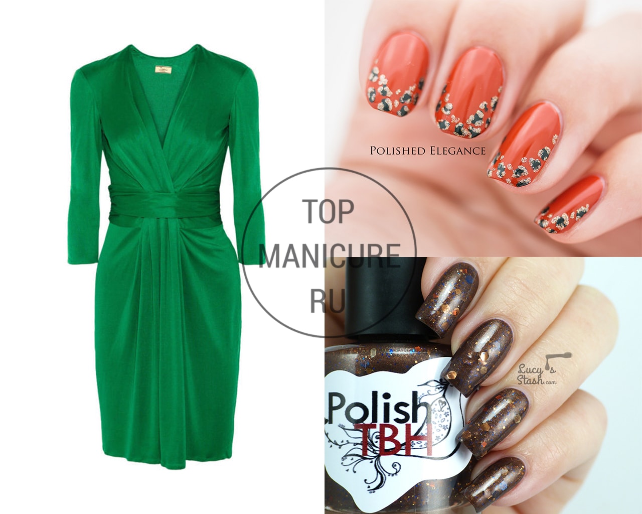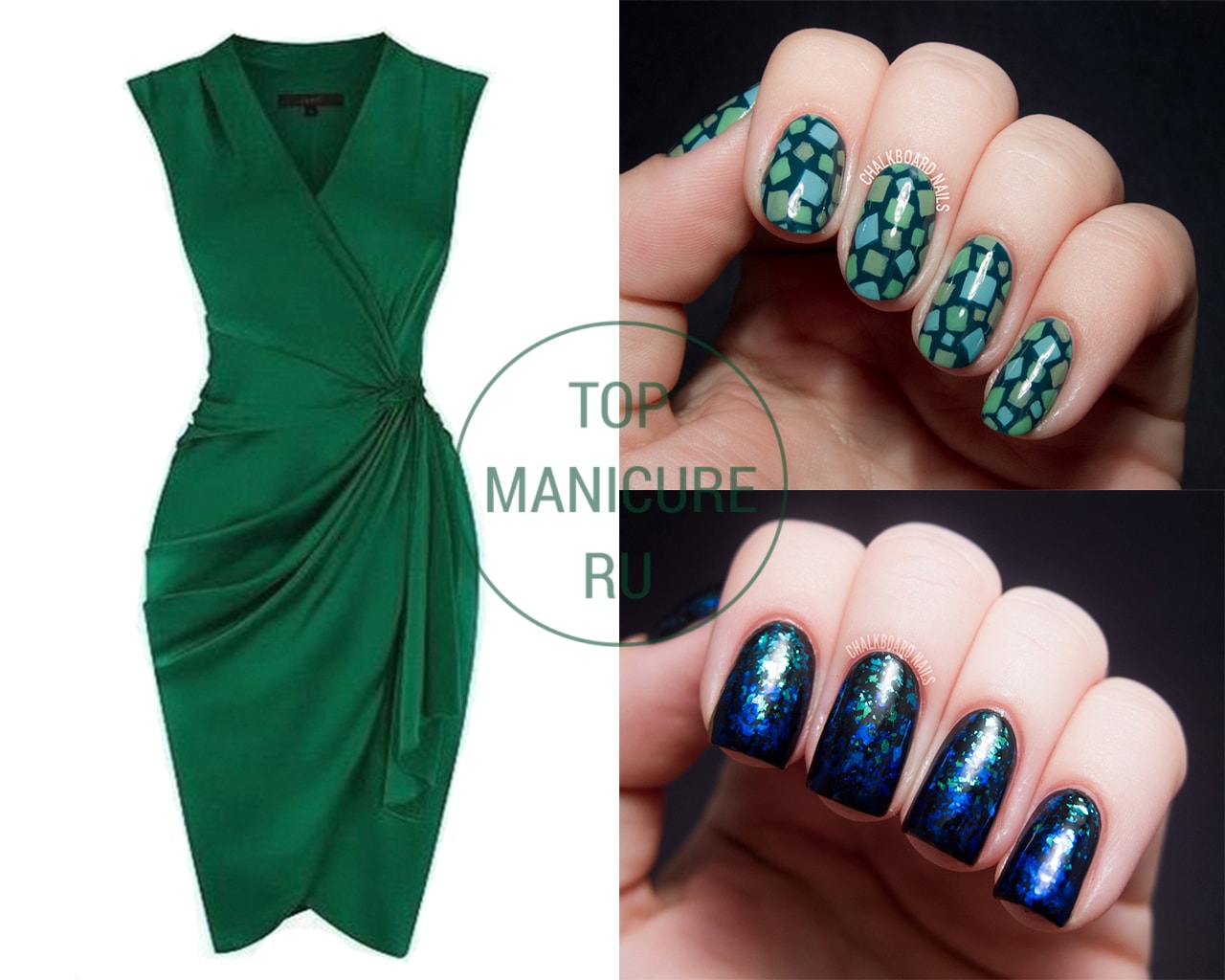 - Manucure sous une robe verte