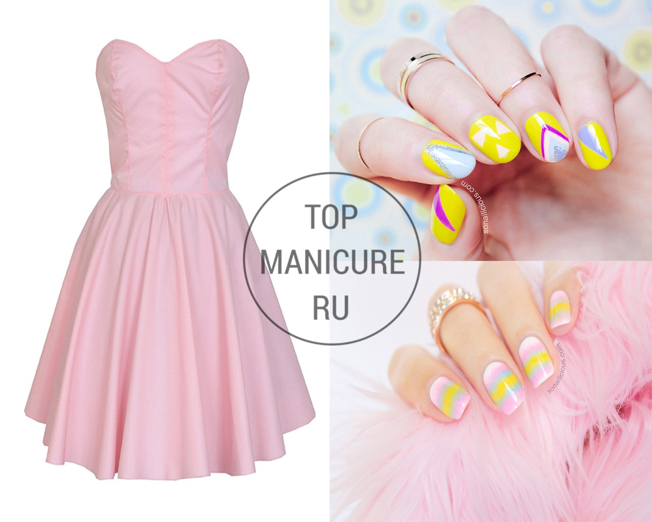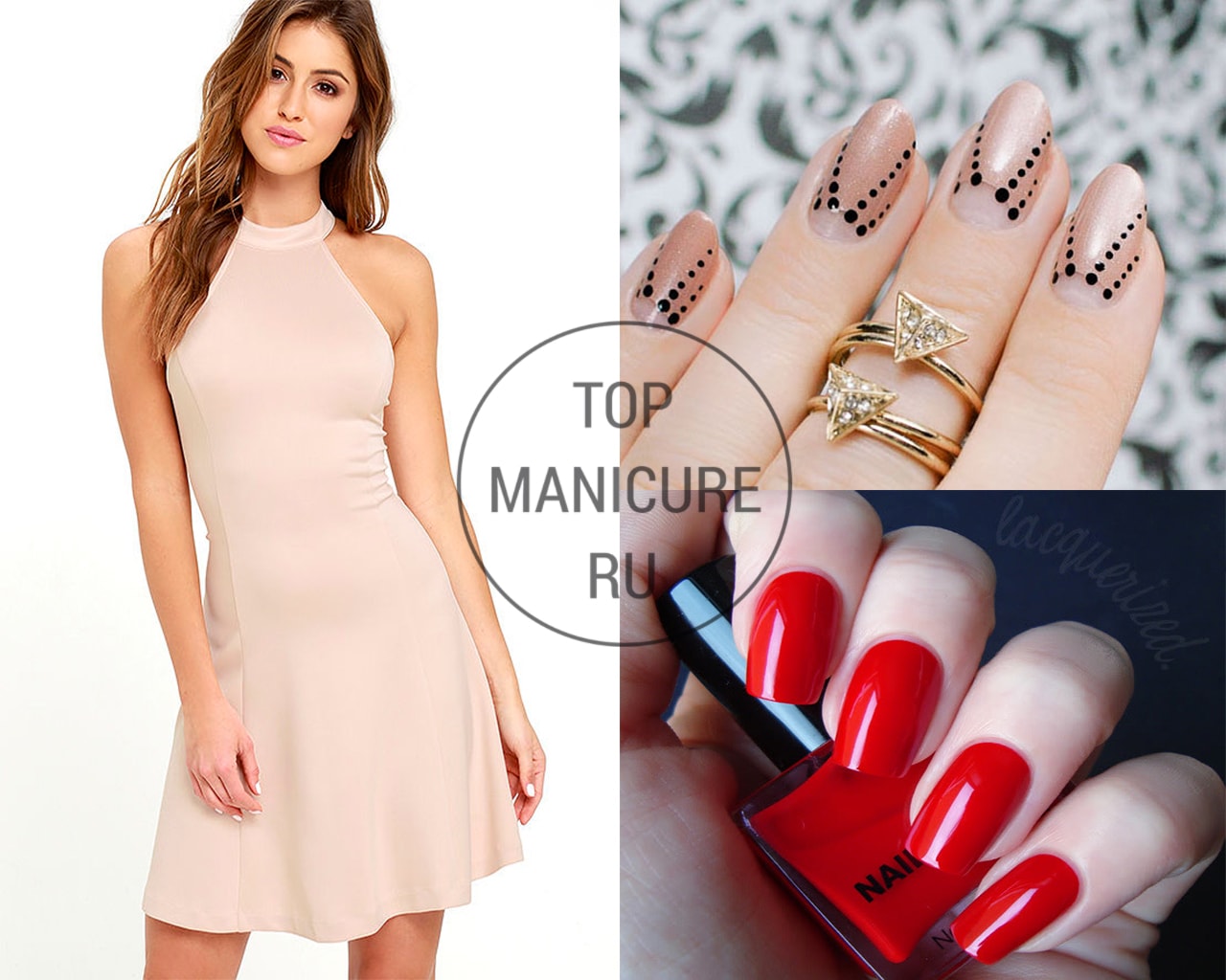 La manucure est l’un des éléments importants du look à la mode de chaque fille. C'est pourquoi presque toutes les beautés visitent une manucure. Un ouvrier professionnel dans n'importe quel salon sera capable de choisir correctement la forme et la couleur des ongles pour un style de vêtement différent. Lorsque vous faites une manucure, vous devriez toujours vous demander quelle forme de vêtement le client préfère et à quelle occasion le nail art est fait. Après tout, vous devez admettre que les tons brillants et saturés de la couche de souci ne s’adaptent pas à toutes les couleurs de la garde-robe. Par conséquent, nous proposons aujourd'hui de discuter du type de manucure à utiliser pour créer des nœuds pour dames à la mode avec une robe.