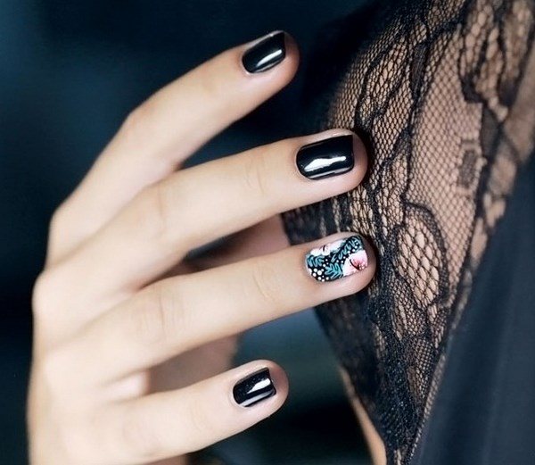 Une robe noire est associée à diverses nuances de manucure. Une excellente option est une veste de couleur. Après tout, c'est lui qui convient le mieux au style classique du vêtement. Pour le français, utilisez des teintes de vernis noires, blanches et rouges. De nombreuses beautés préfèrent la couleur dorée de la manucure à une robe noire. C'est ce ton qui peut souligner l'originalité et la supériorité de l'image féminine.