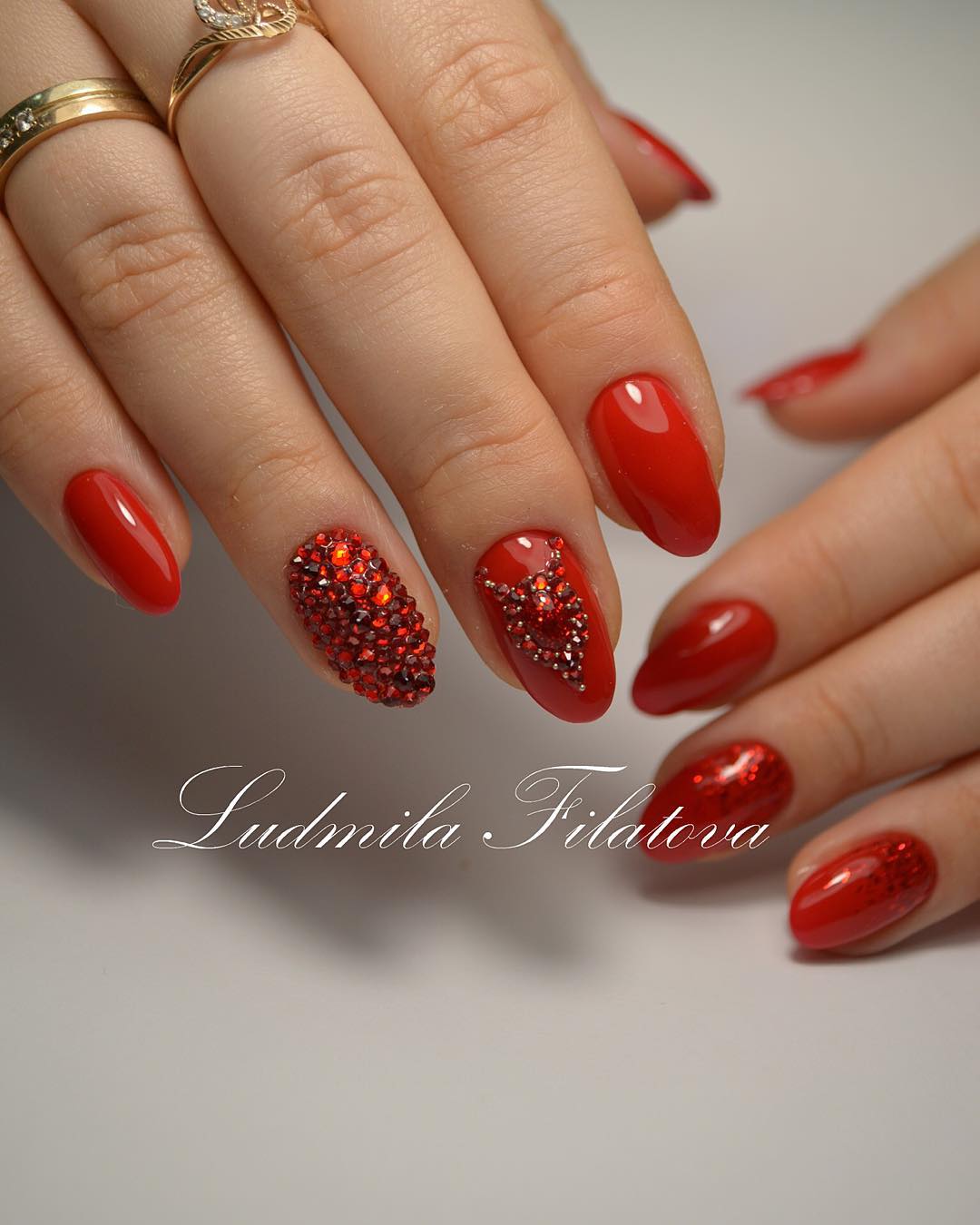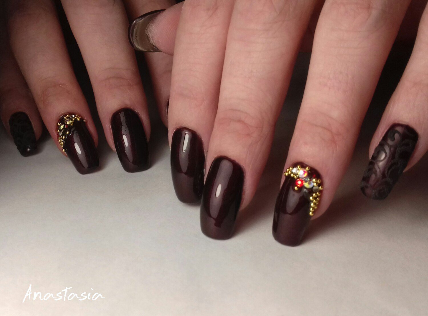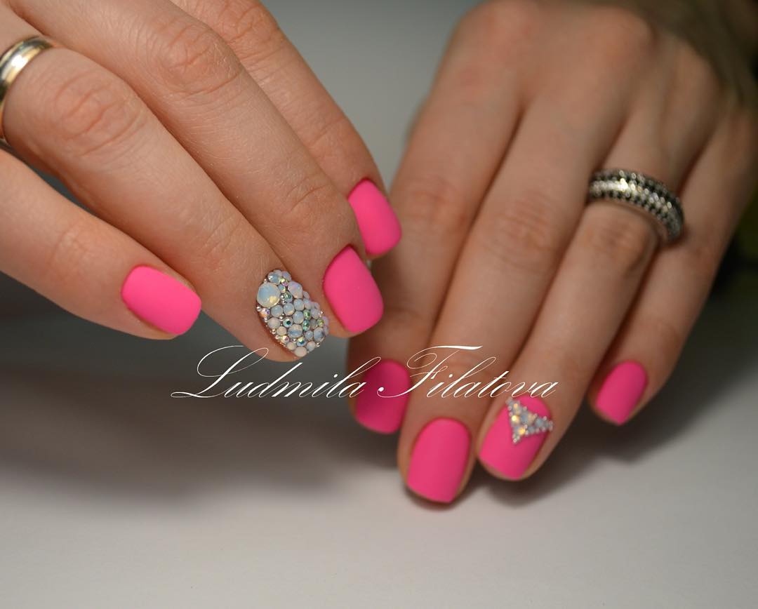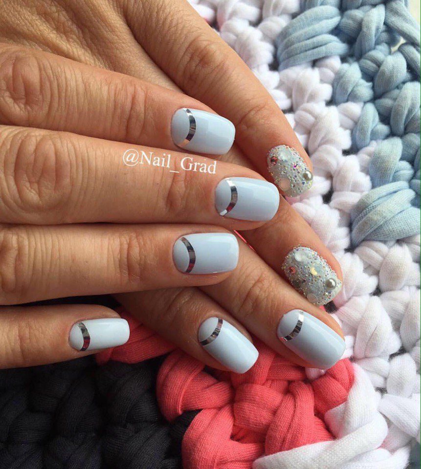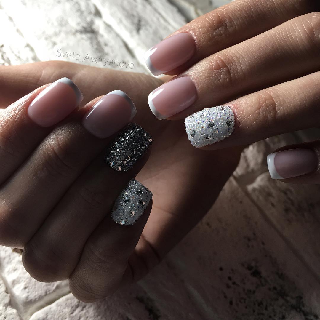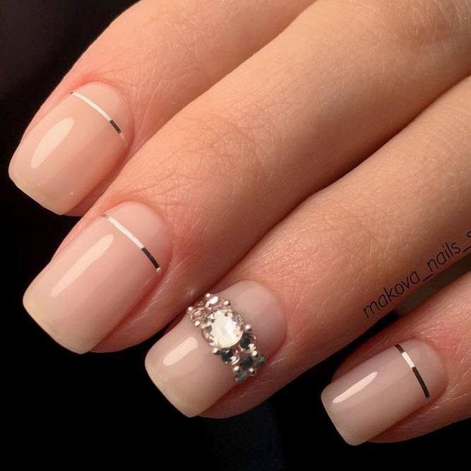 Il existe de nombreux bijoux de manucure intéressants qui se marient parfaitement avec des bouillons. Un exemple est strass. Avec leur aide, vous pouvez créer une variété d'ornements: des fleurs, des lignes, des coins et de nombreux autres dessins. Une manucure avec bouillons et strass semble assez originale et riche. Tout dépend du professionnalisme et de l'imagination du maître.