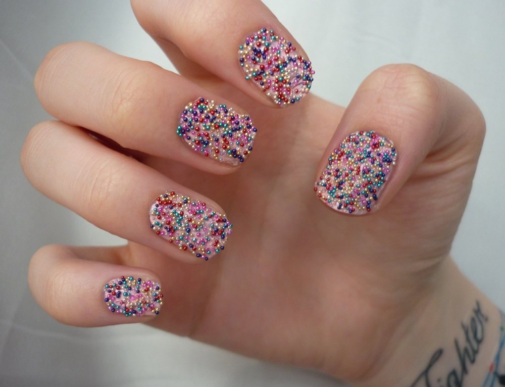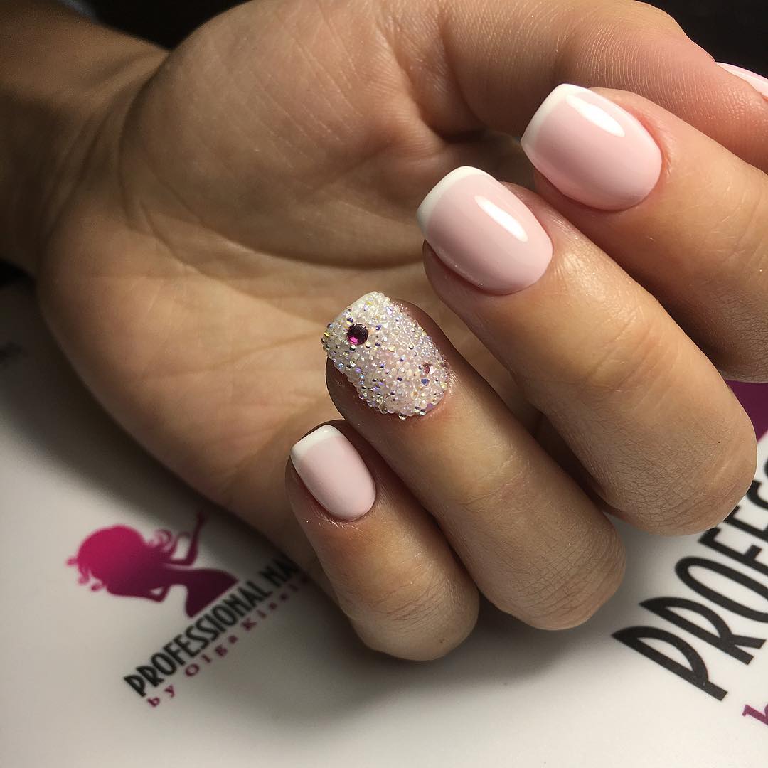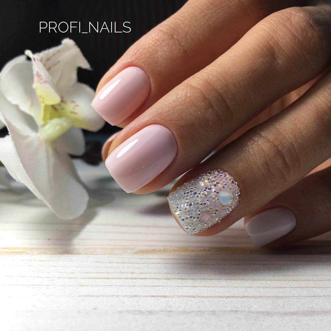 De nombreux maîtres aiment expérimenter et prendre des mesures assez imprévisibles lors du choix de bijoux pour les ongles féminins. L'une des options originales est de s'endormir complètement au doigt de l'annulaire avec de petits bouillons.Les bouillons transparents sont parfaits pour la literie et les enduits de laque rose. Cette option peut être utilisée à la fois pour les célébrations et pour l’arc de tous les jours. Avec l'aide de bouillons transparents, n'importe quelle beauté peut donner à son image un aspect plutôt doux et décontracté.