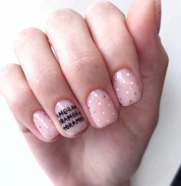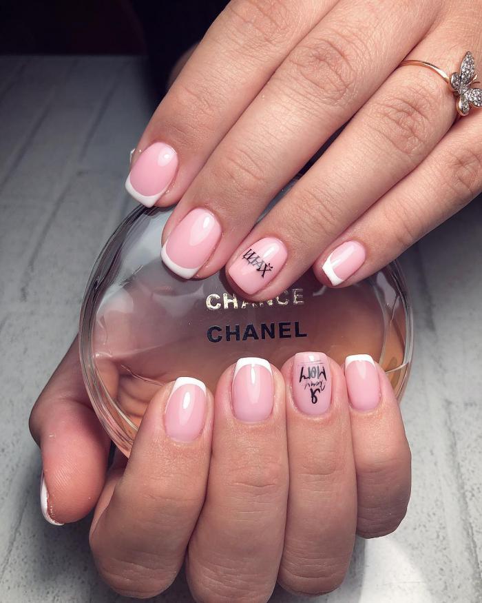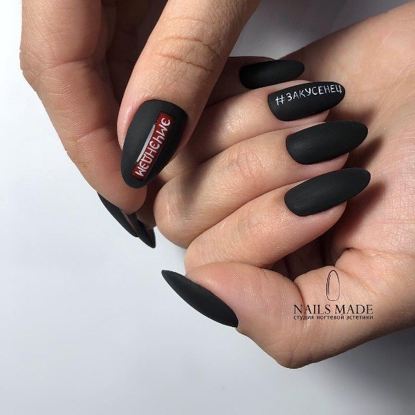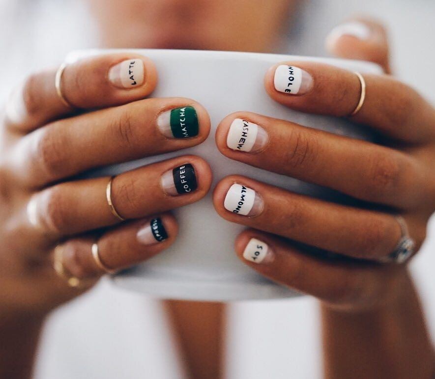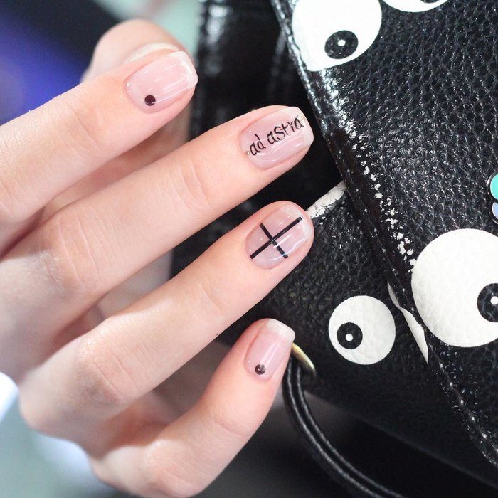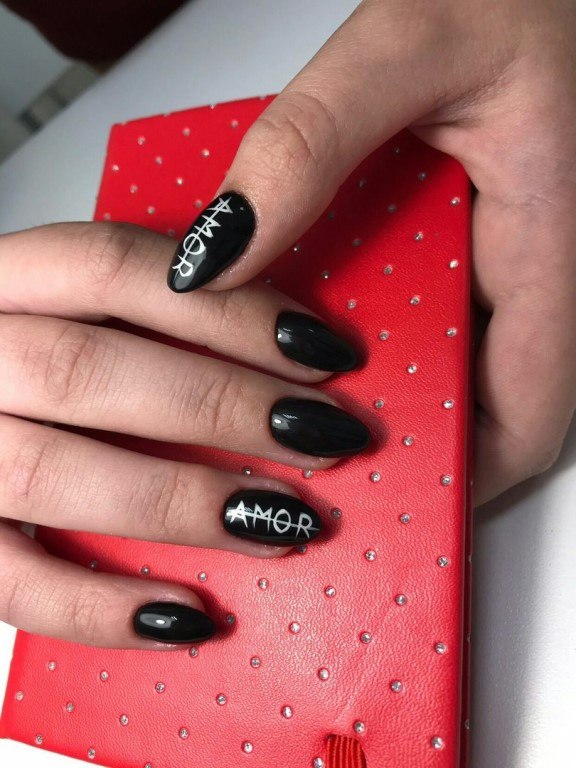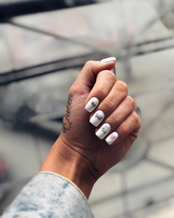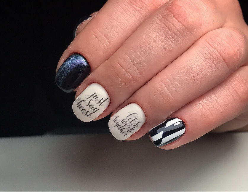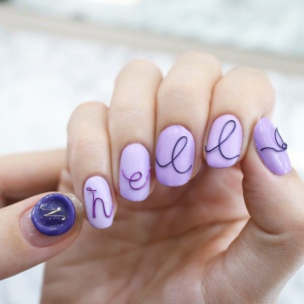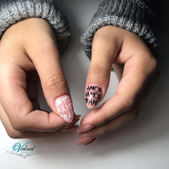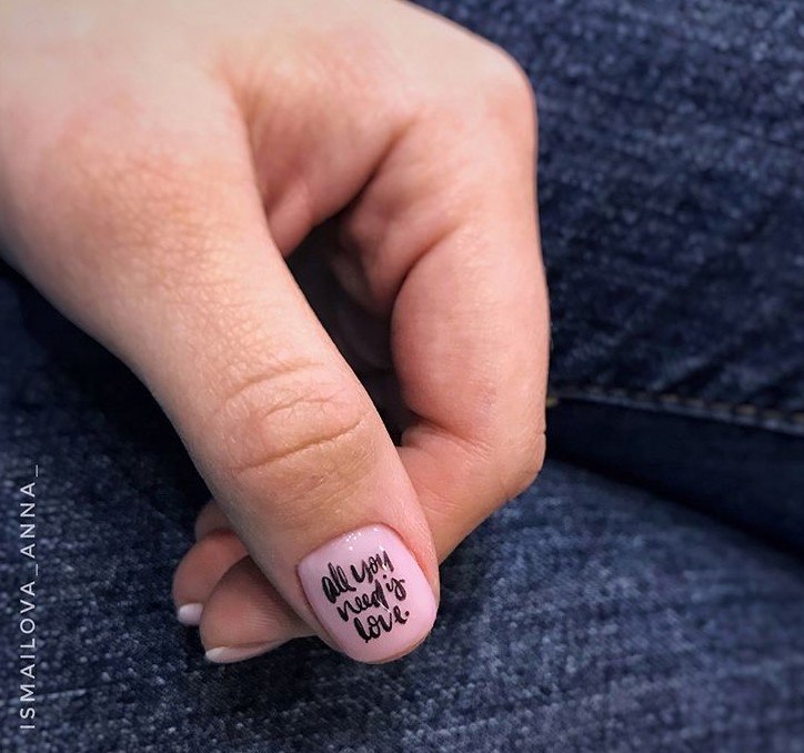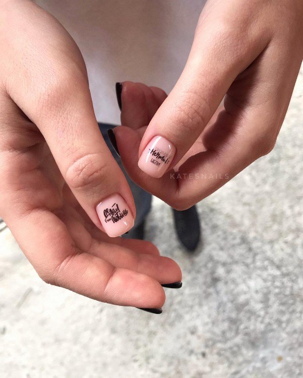 - Conception de manucure avec des inscriptions.