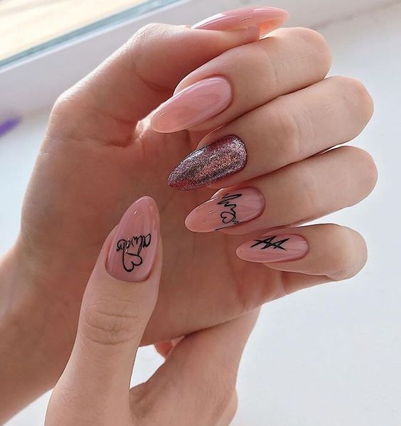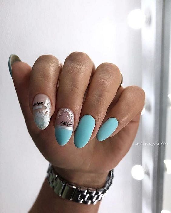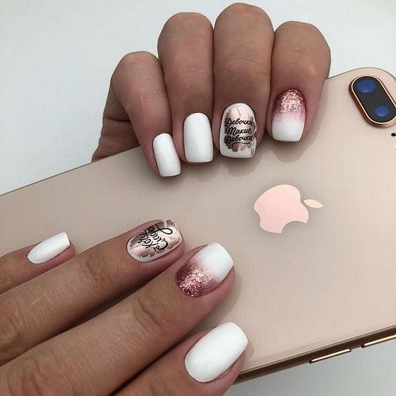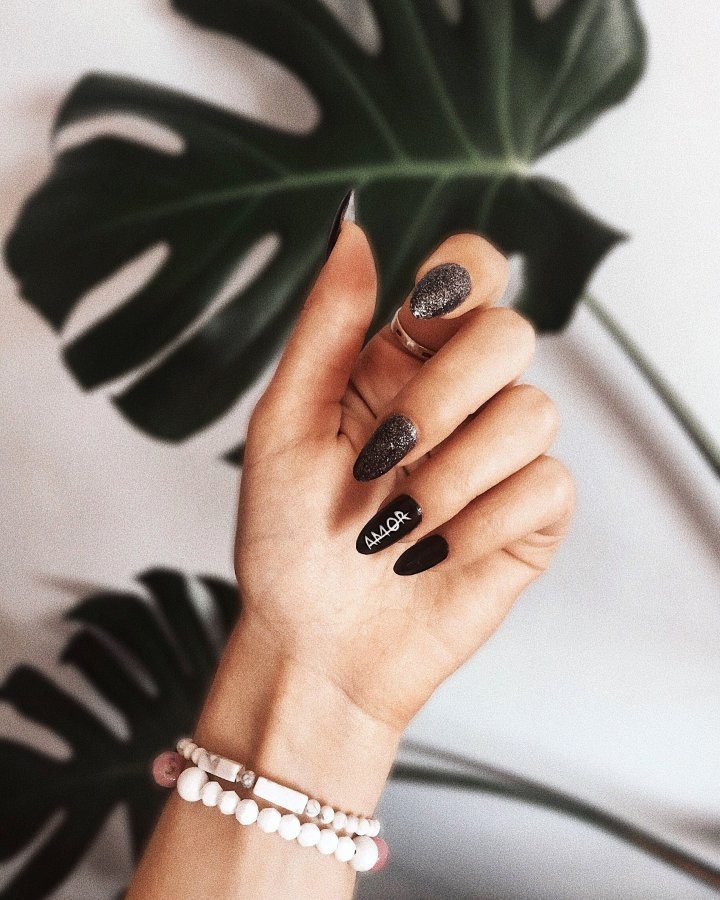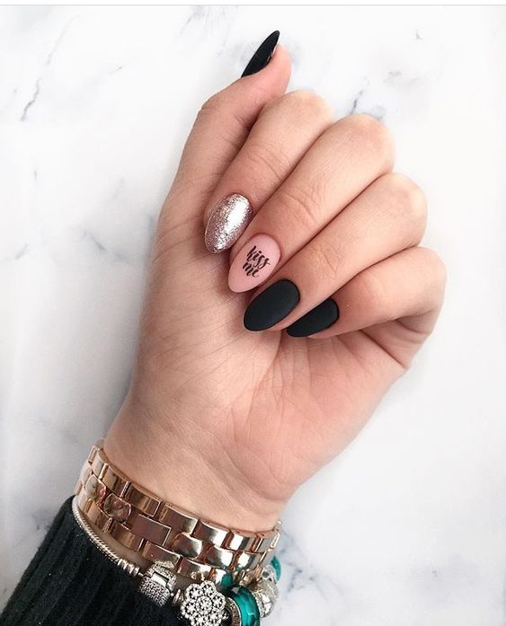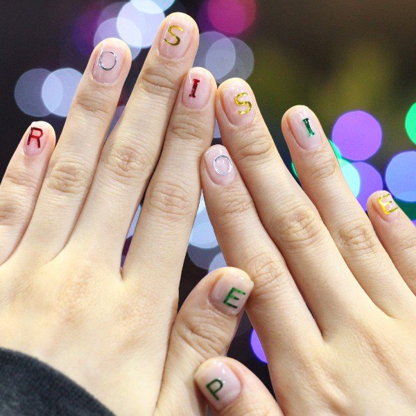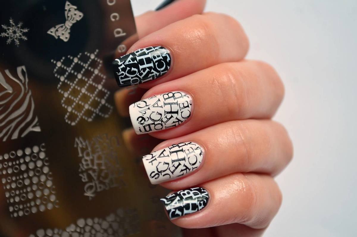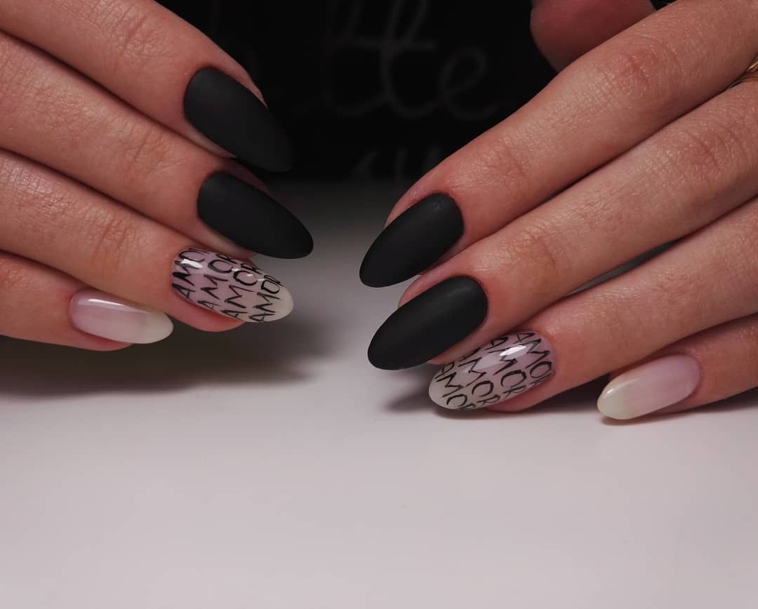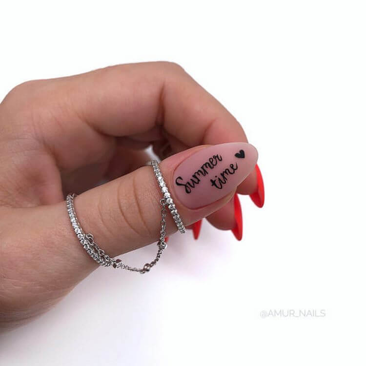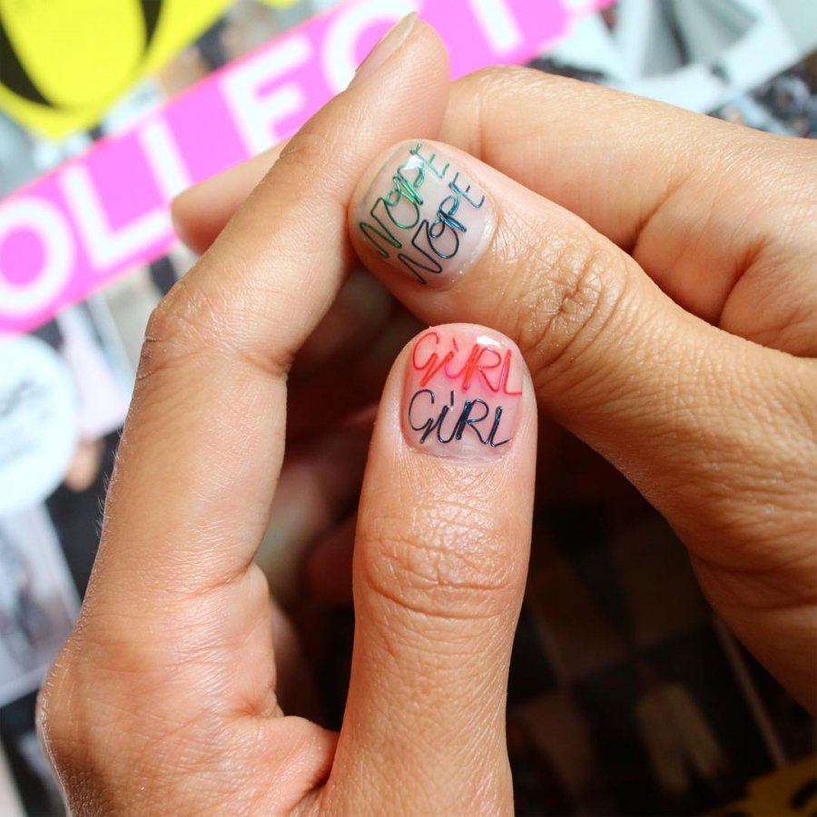 - Conception de manucure avec des inscriptions.
