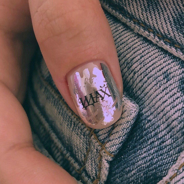 Ceux qui aiment les belles lettres élégantes sur les ongles doivent faire l’inscription à la main. Bien sûr, cela peut être assez difficile, car beaucoup dépend de votre style. Il est préférable de pré-entraîner sur le papier afin de faciliter l’effet souhaité sur les ongles.
