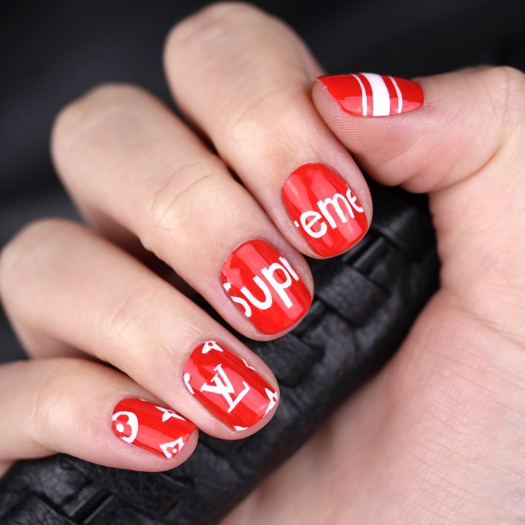 En raison de la popularité des marques bien connues, beaucoup préfèrent les utiliser littéralement partout. Il ne s'agit pas uniquement d'accessoires et de vêtements, mais également de la conception des ongles. Par conséquent, vous pouvez voir de plus en plus souvent des soucis décorés des inscriptions Chanel, Prada, Nike et bien d’autres.