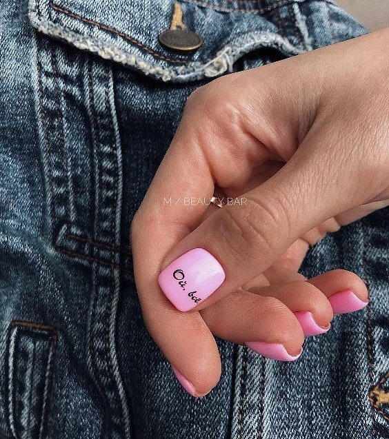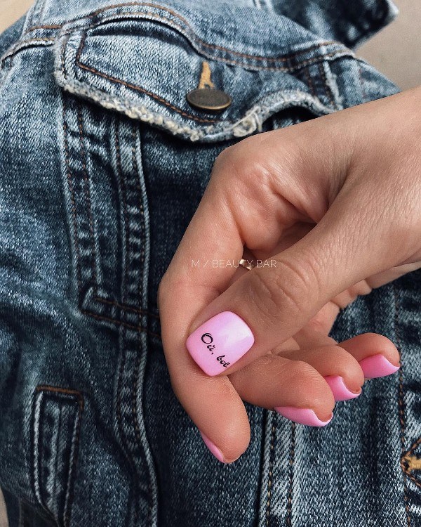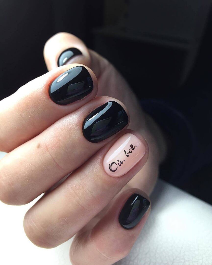 Sûrement, beaucoup ont vu la phrase populaire "Oh, tout ...". Une inscription aussi étrange sur les ongles peut être vue plus souvent. Des teintes vives de vernis ou un motif inhabituel sont un excellent ajout à un design aussi audacieux.