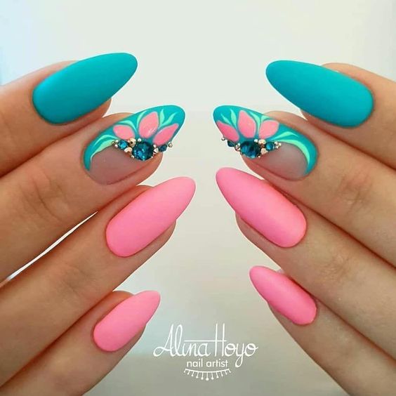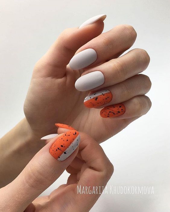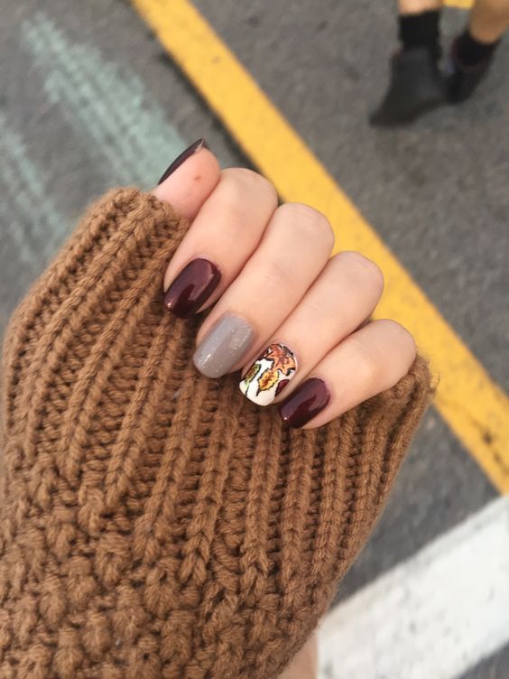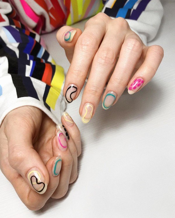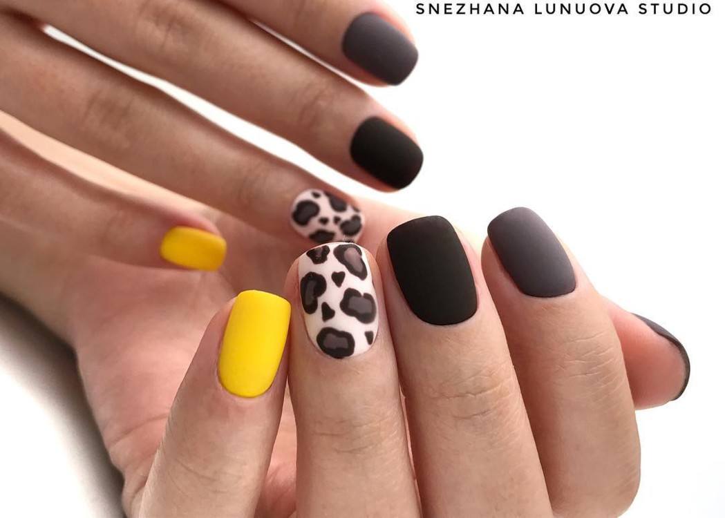 Pour créer une manucure de cette nature, ils utilisent souvent une variété de couleurs sur un ongle. Globalement, vous devez ajouter une image ou un autre élément. Un exemple est une nuance différente de soucis avec une veste avec divers revêtements de vernis.