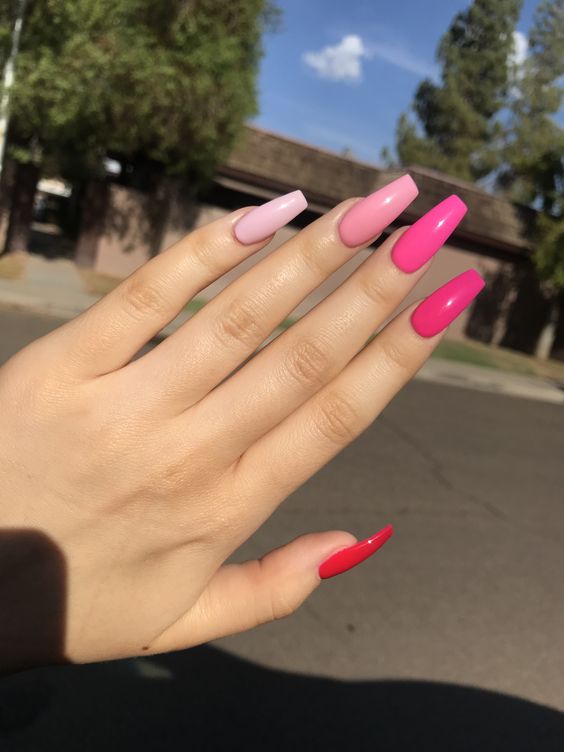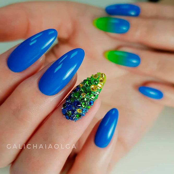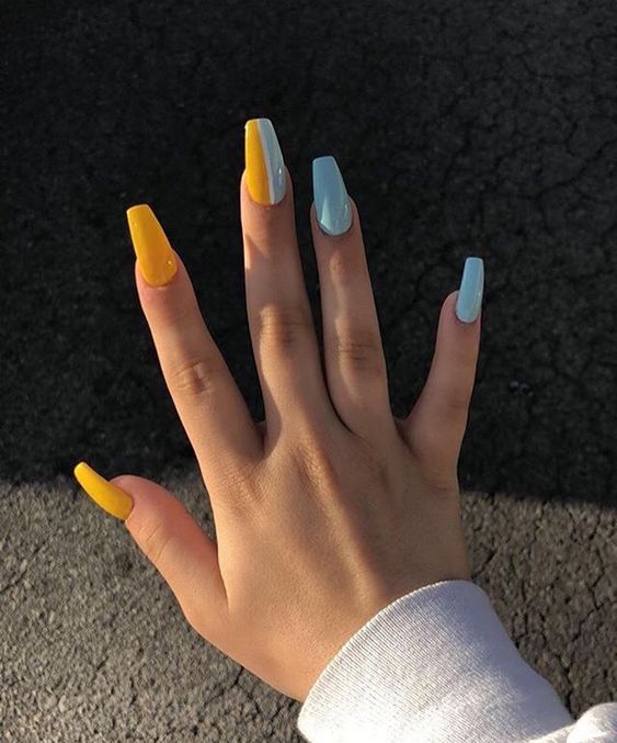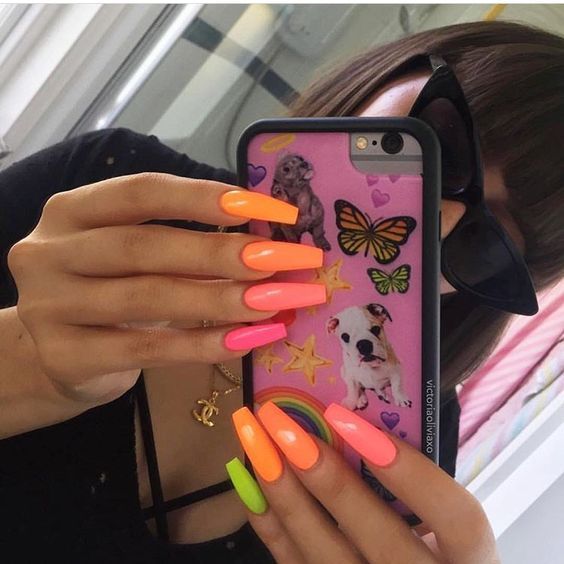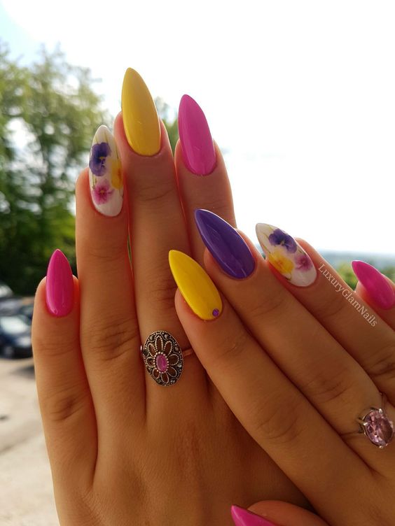 Les filles modernes préfèrent des options extraordinaires de manucure. Parfois, les ongles de fille sont recouverts de couleurs différentes et chacune d’elles est intéressante à sa manière. Vernis brillants principalement utilisés (teintes rouge, bleu, vert, lilas). Une telle manucure est souvent faite à la saison chaude.Imaginez l'été, le soleil et vous, lumineux et unique, allez vers votre bonheur. Croyez-moi, votre image ne passera pas inaperçue!