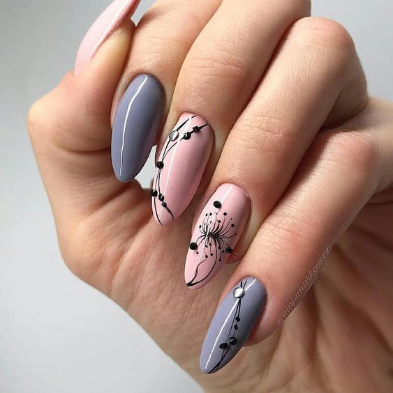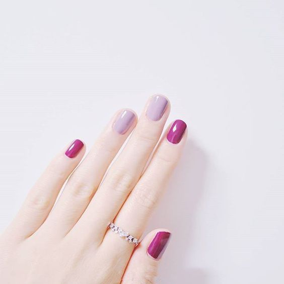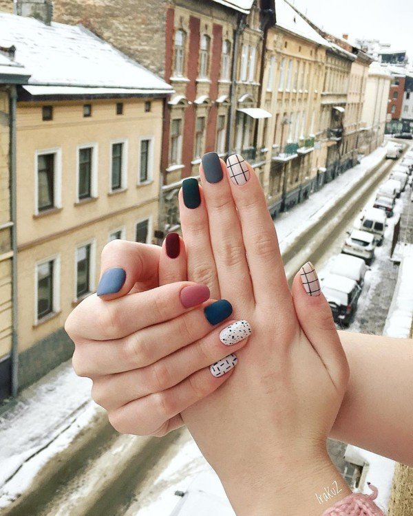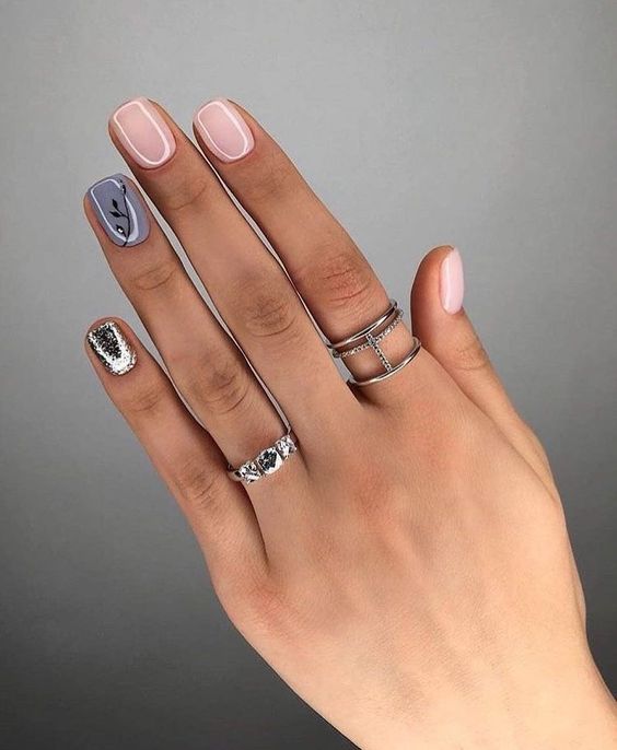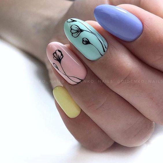 Manucure avec différentes couleurs sur les ongles: une combinaison