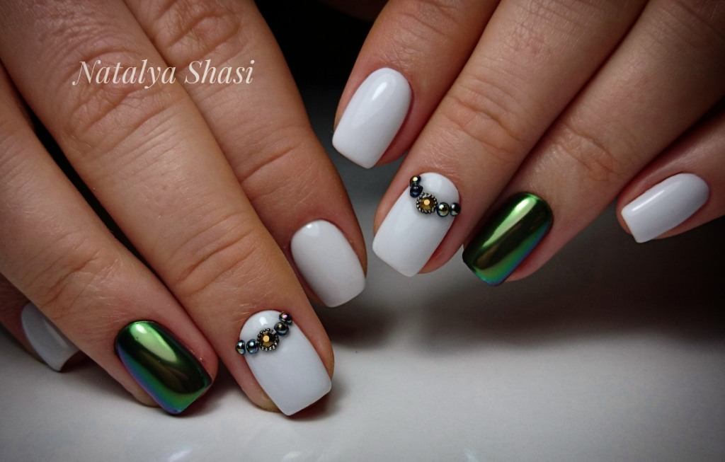 Chaque année, de plus en plus d’idées intéressantes de manucure aux teintes multicolores apparaissent. En 2026, nous avons obtenu d'excellentes combinaisons de nuances de vert, de bleu, d'orange, de lit et de lilas. Une excellente option est une manucure faite en vert, où l'ongle sans nom et moyen est recouvert d'un ton beige. Pour décorer ces doigts, vous pouvez utiliser des bouillons, une variété d'autocollants. Si une fille a une couleur bleue à son goût ou à son image, l'annulaire et l'index peuvent être recouverts de blanc, et pour la décoration, mettre des autocollants et des cailloux mousseux.