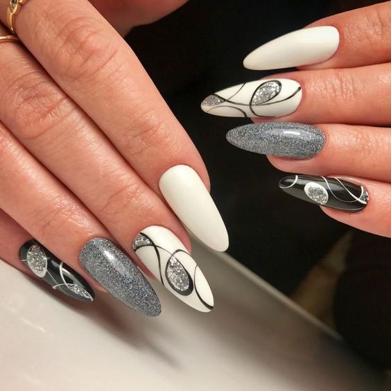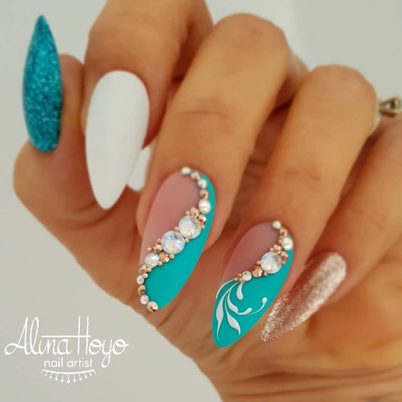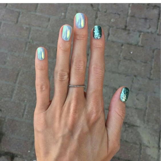 Pour les filles qui aiment tout ce qui est brillant, les manucures offrent une excellente version du nail art couleur avec l’ajout d’étincelles. Dans cette manucure, un miroitement viendra à la rescousse. De petites particules chatoyantes peuvent donner à toute manucure un aspect chic et brillant. Cette conception de clous est idéale pour la mode, les fêtes et les occasions spéciales.