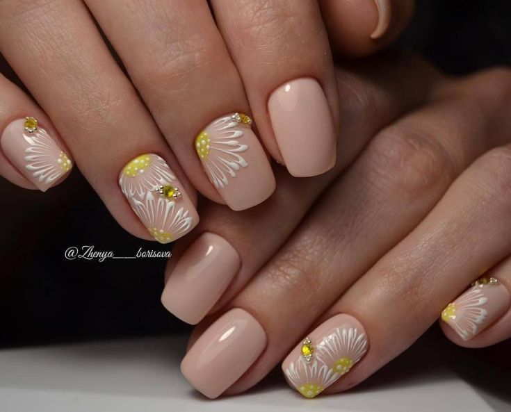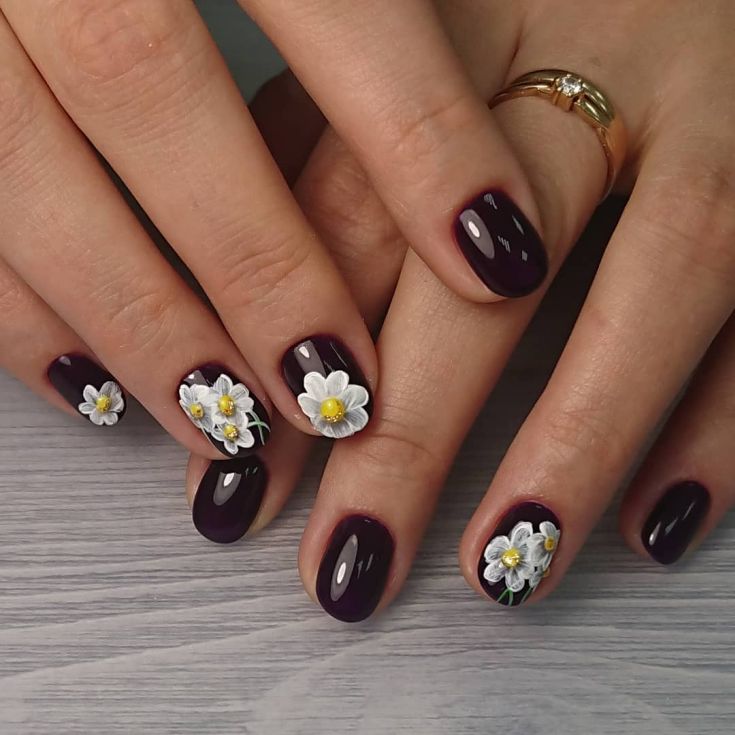 Manucure classique à la camomille avec marguerites